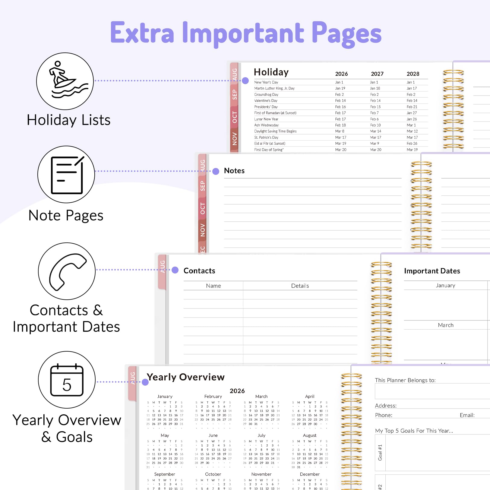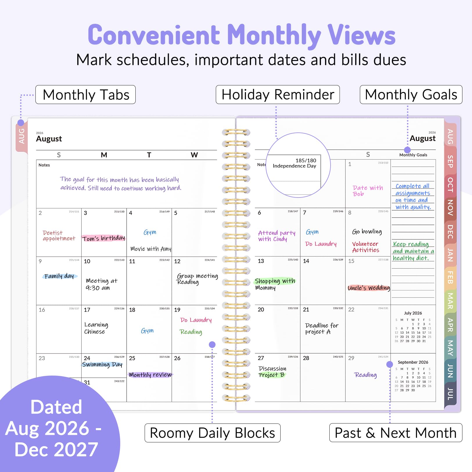 Planner 2026-2027: Come with 17 months (Aug 2026 - Dec 2027) for easy jotting down of events, appt, deadlines and meetings that are scheduled way in advance. Plan ahead! Includes 3 additional monthly pages (May 2026 -July 2026), so you can start organizing early. Perfect for anyone planning around school.