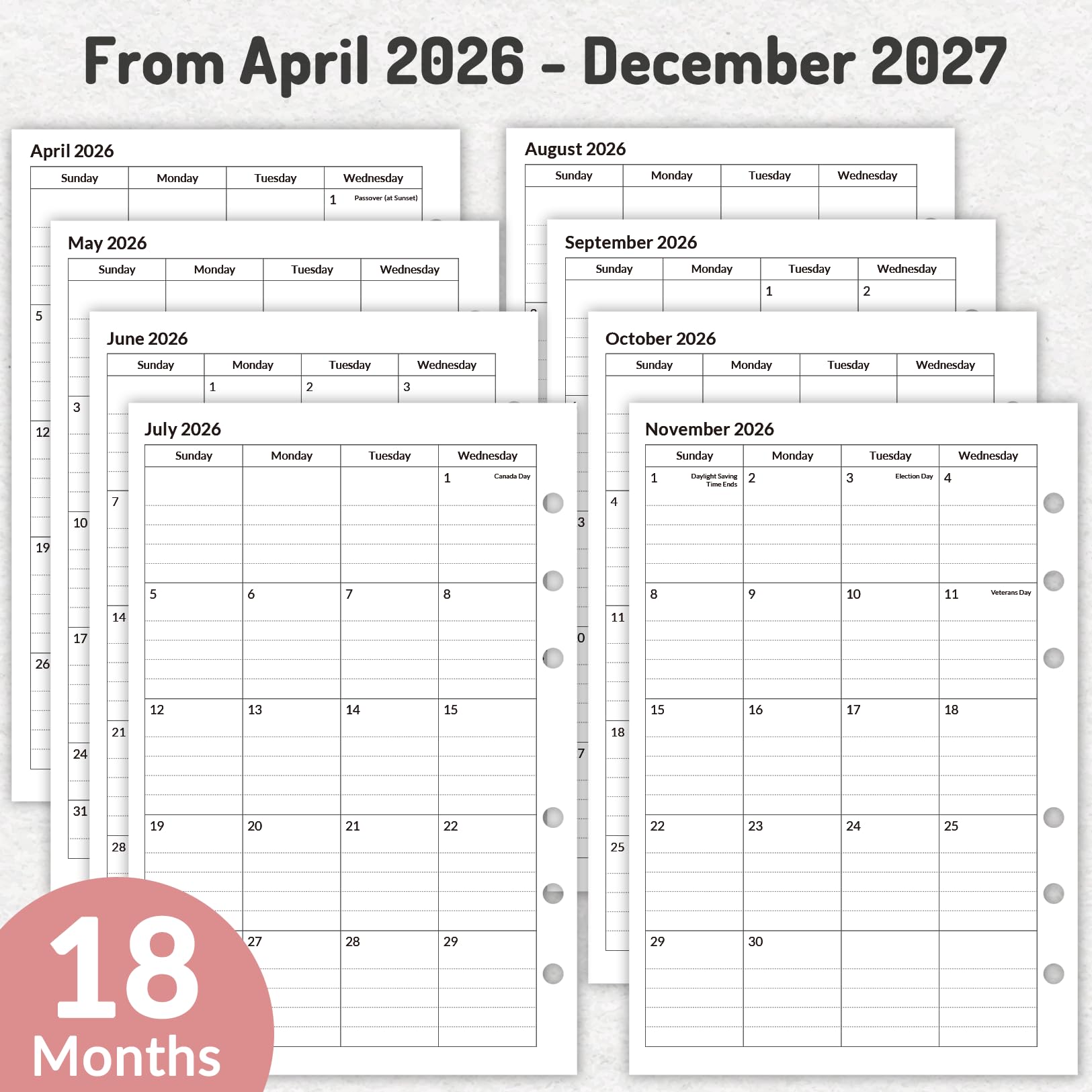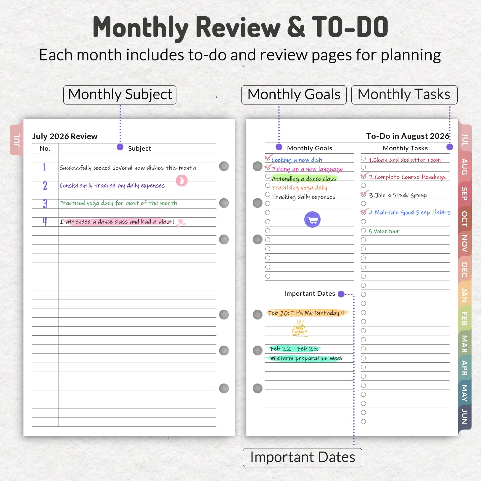2026-2027 Planner Refills with Colorful Monthly Tabs: Come with 18 months (July 2026 - Dec 2027) of monthly pages with tabs, plus 3 additional monthly pages (April 2026 - June 2026), helping you plan ahead right now! Monthly tabs for simplify navigation are laminated to resist tears