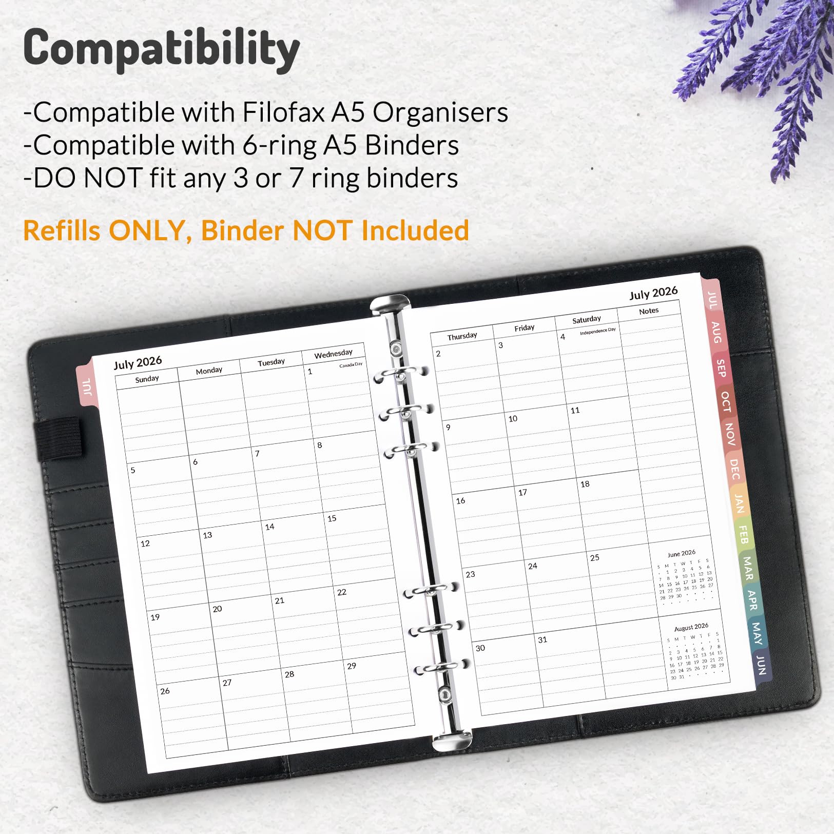 Compatibility & Refills Only: Compatible with Filofax A5 Organizers, A5 6-ring binders. DO NOT fit any 3 or 7 ring binders. Refills only, the binder is NOT included