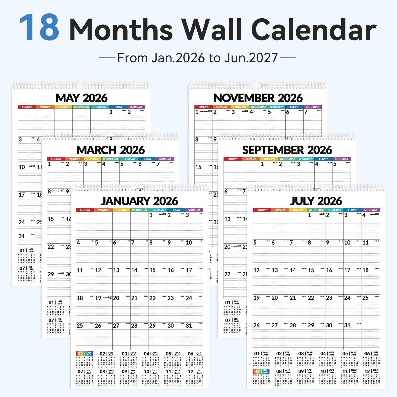18-Month Extended Planning: Plan well ahead from January 2026 through July 2027. Eliminates the mid-year scramble to find a new calendar and helps you stay organized long-term