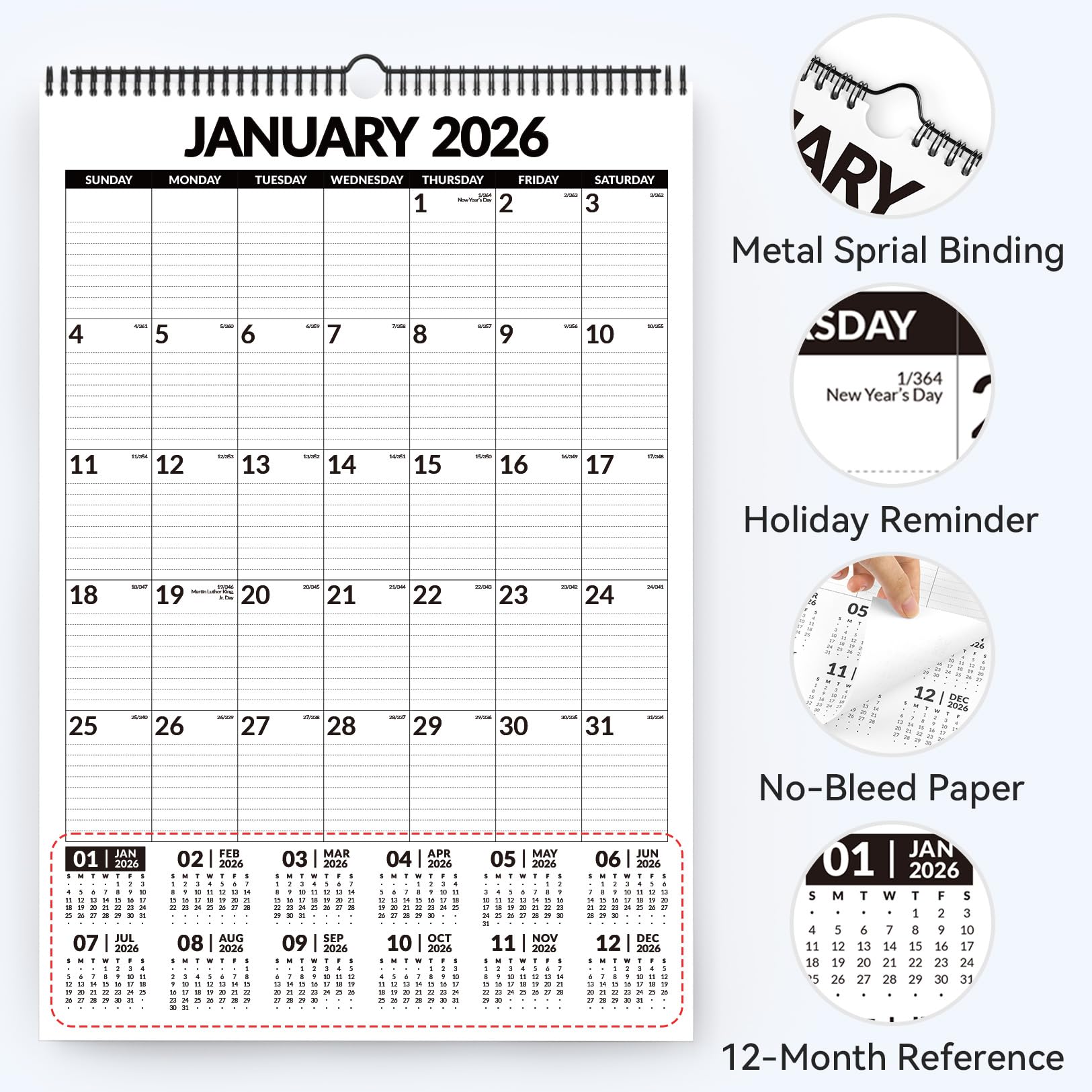 Large, Bold Print for Easy Reading: Features extra-large numbers and dark, clear print, making it perfect for seniors, low-vision users, or anyone who wants to see their schedule at a glance. Never miss an important date again