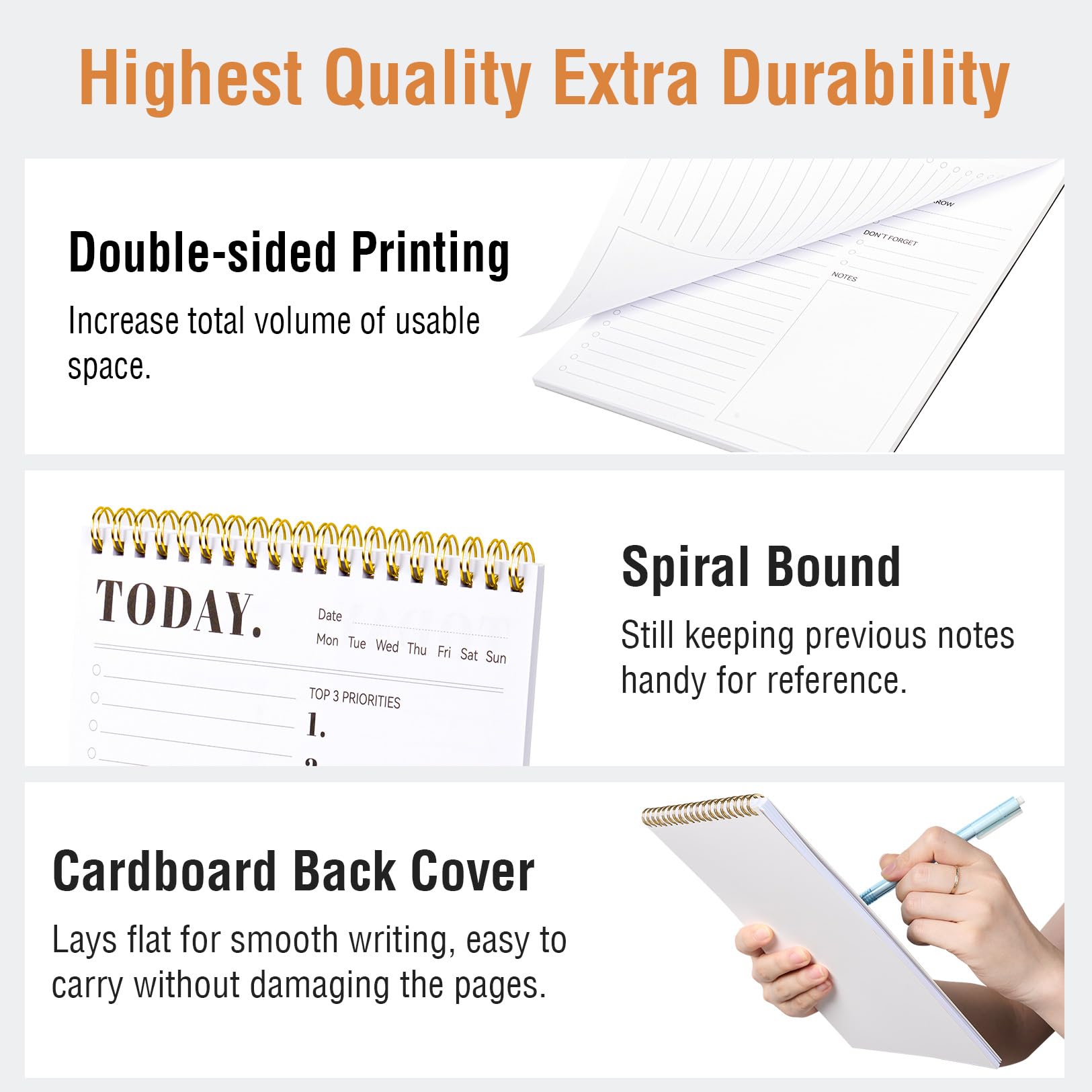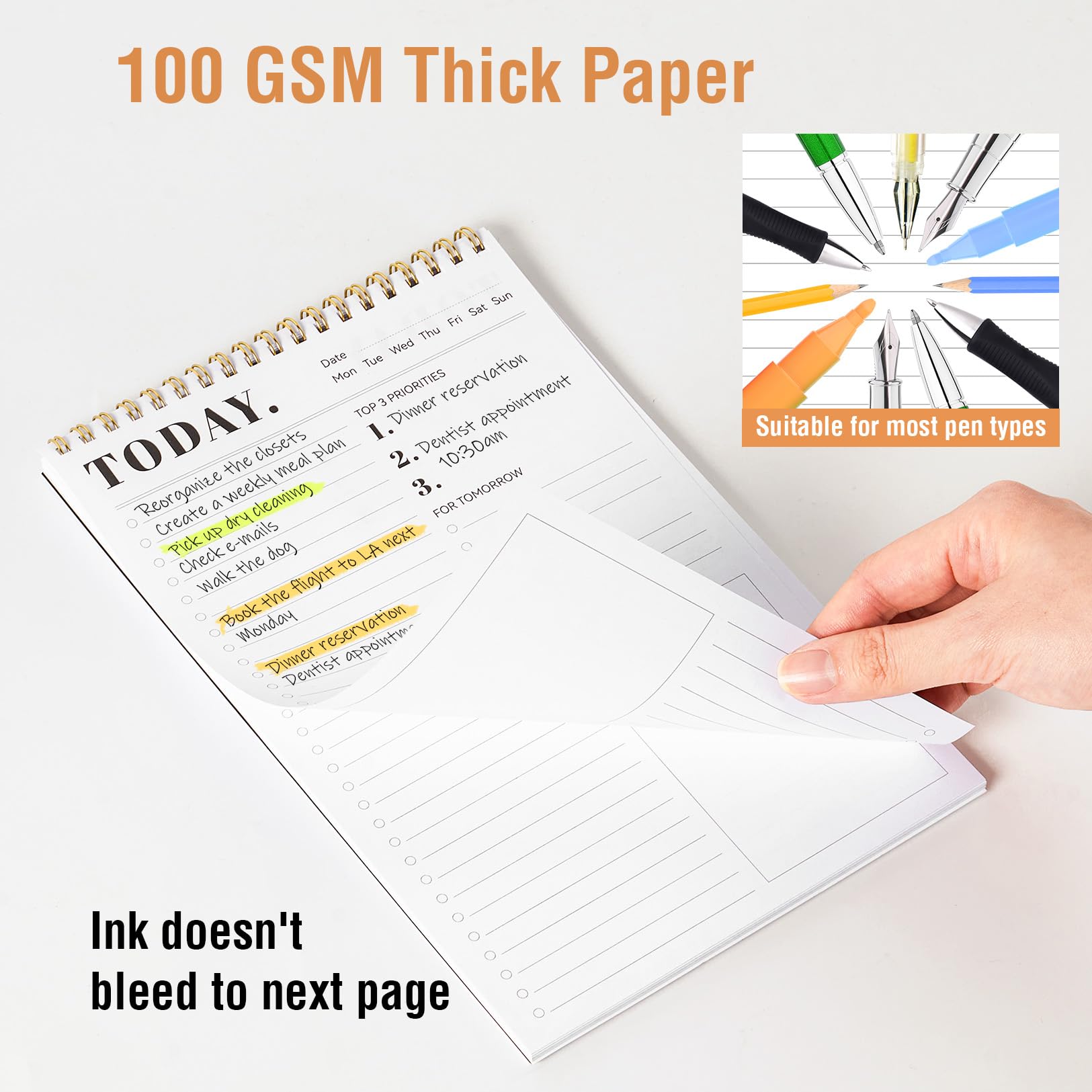 Superior 100GSM Paper: Experience superior, smooth writing without any bleed-through with our ink-friendly paper. Offers 52 Sheets, for almost 3 month of managing your to-do lists. Ideal for organizing home, office, and school tasks