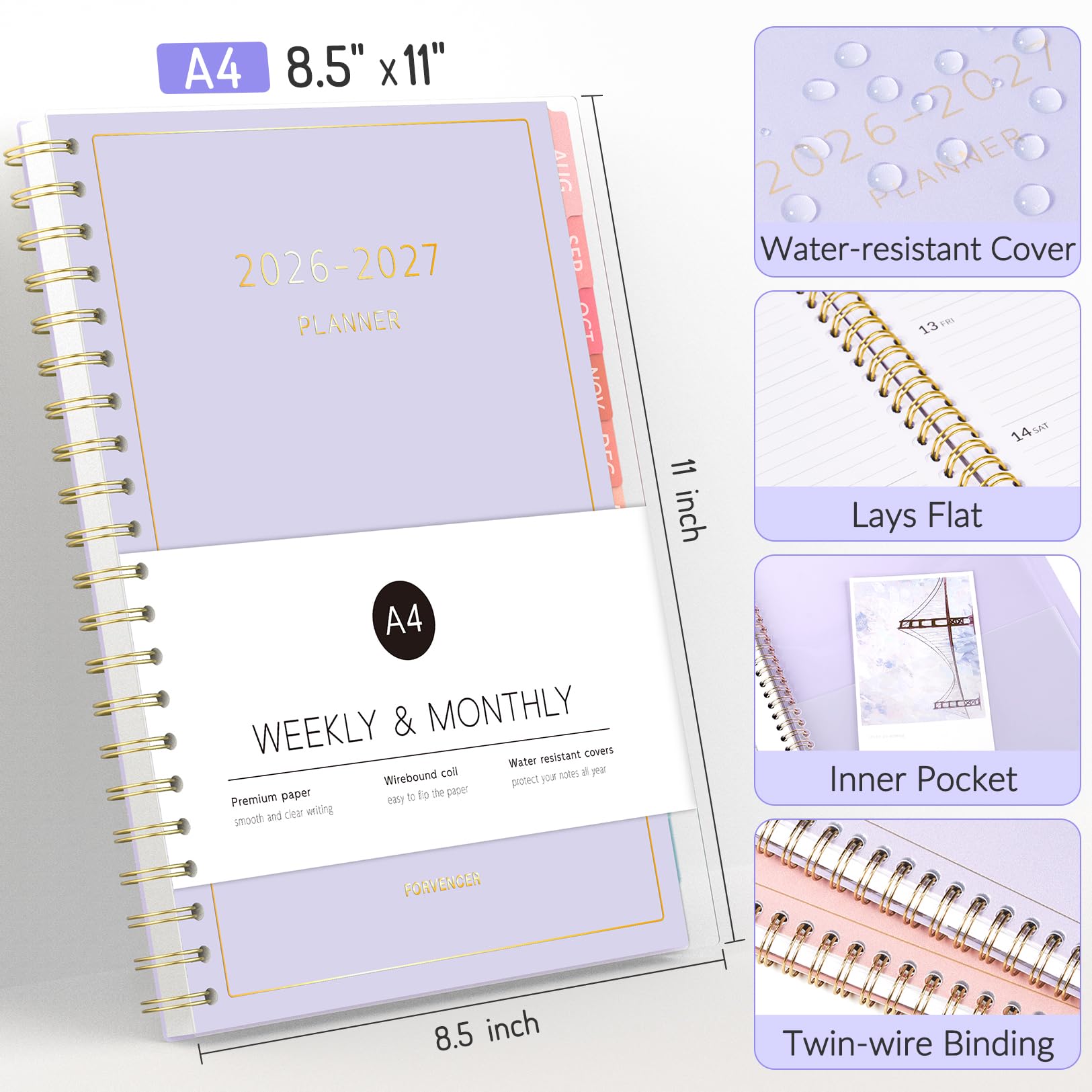 Monthly & Weekly View: Forvencer calendar planner have adequate space on the monthly calendar blocks and weekly day-to-day pages, which is great for holistic planning.