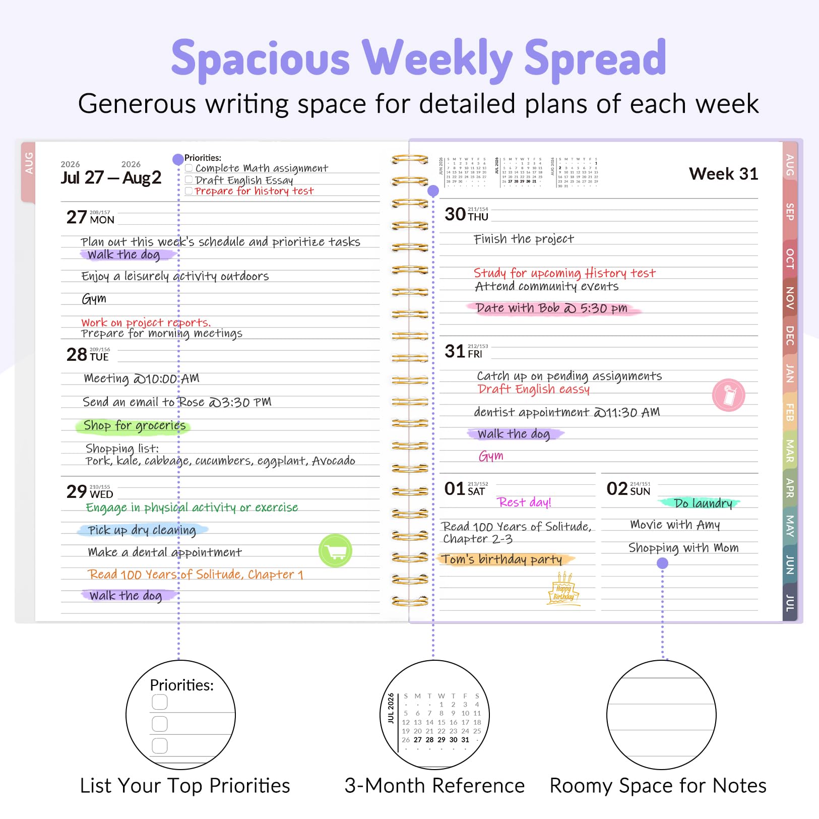 Rainbow Tabs for Easy Navigating: The monthly tabs make it easy to jump where you need to go when you flip it open—a good design for busy people, student teacher who want to track things day by day.