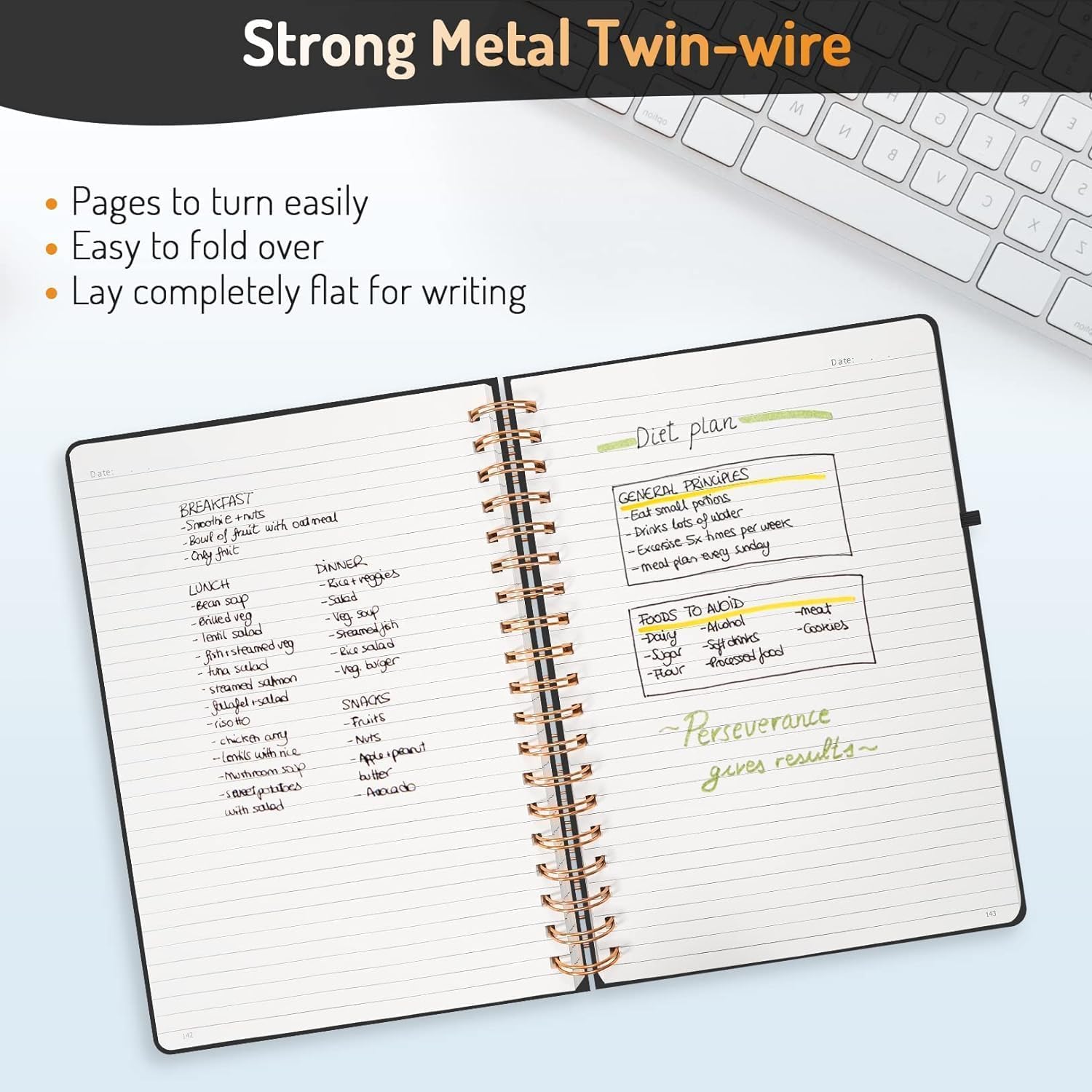 Strong Metal Twin-wire & Durable Hardcover: Feature a super durable Golden double wire spiral binding with heavy-duty hardcover; making it easy to fold over and laying the notebook totally flat easily, giving you a better writing experience. The professional durable water-resistant hardcover will protect your journal to last for years.