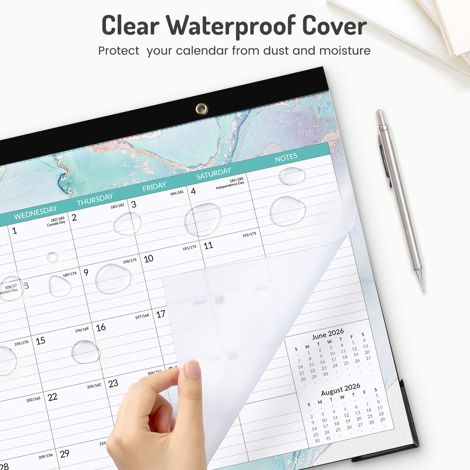 Premium Quality & Durability: Desk calendar 2026-2027 features a waterproof transparent cover and reinforced corners to resist spills and dirt, ensuring your calendar stays in perfect condition even with frequent handling.