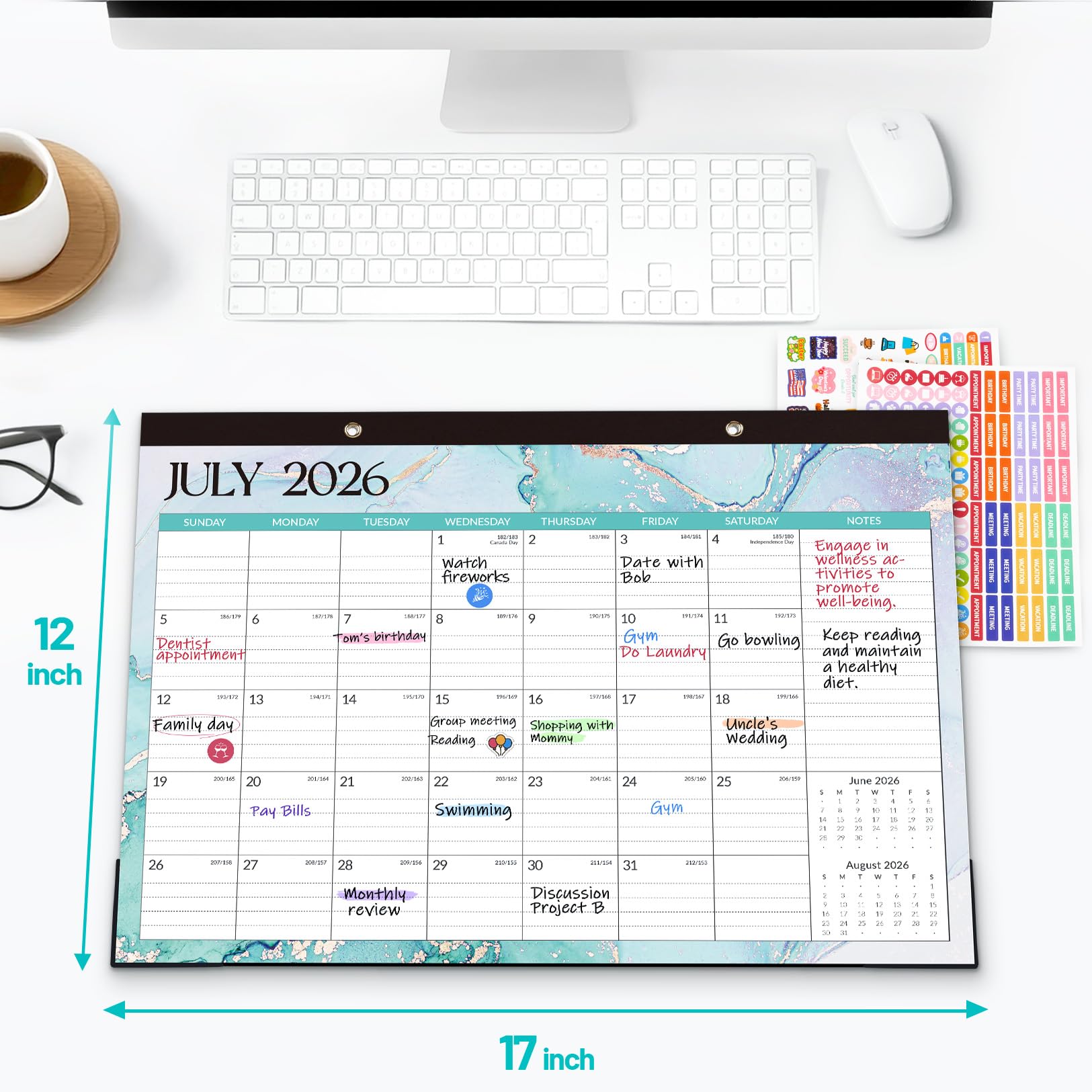 Stay Organized All Year: 2026-2027 desk calendar (17"x12") offers ample space for monthly planning and organization. Perfect for long-term projects, school or teaching schedules and work commitments. Track deadlines, appointments, kid’s sports or school events, stay coordinated all year long.