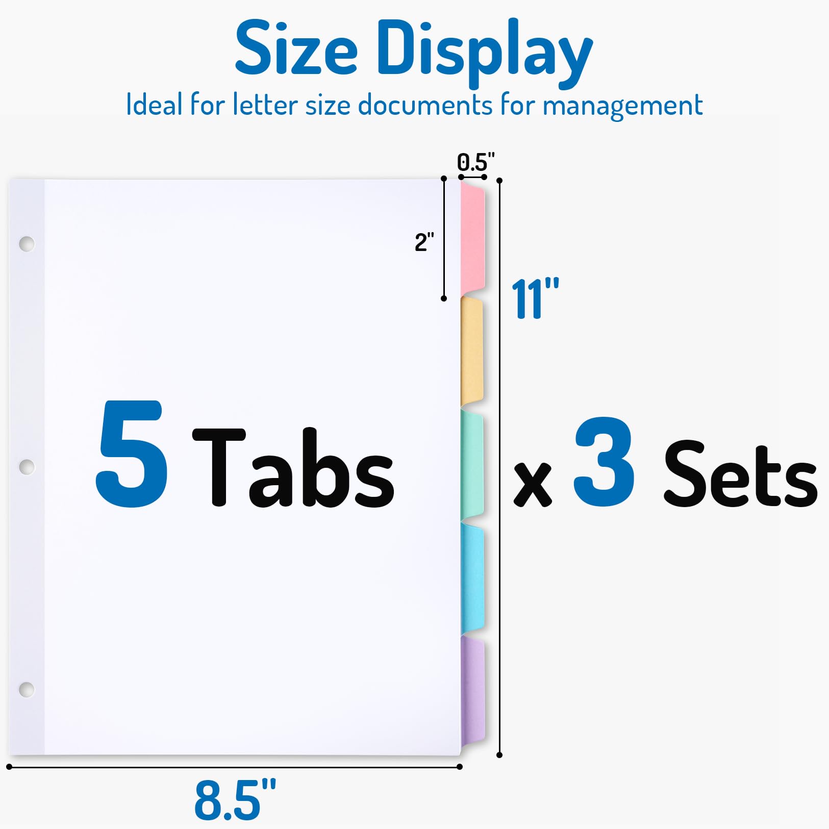 Efficient Organizer: Say goodbye to messy paperwork! 3 sets of 5 tabs dividers, 15 dividers in total meet all your organization needs—the perfect affordable solution to organize school projects, office files, and important documents in 3-ring binders.