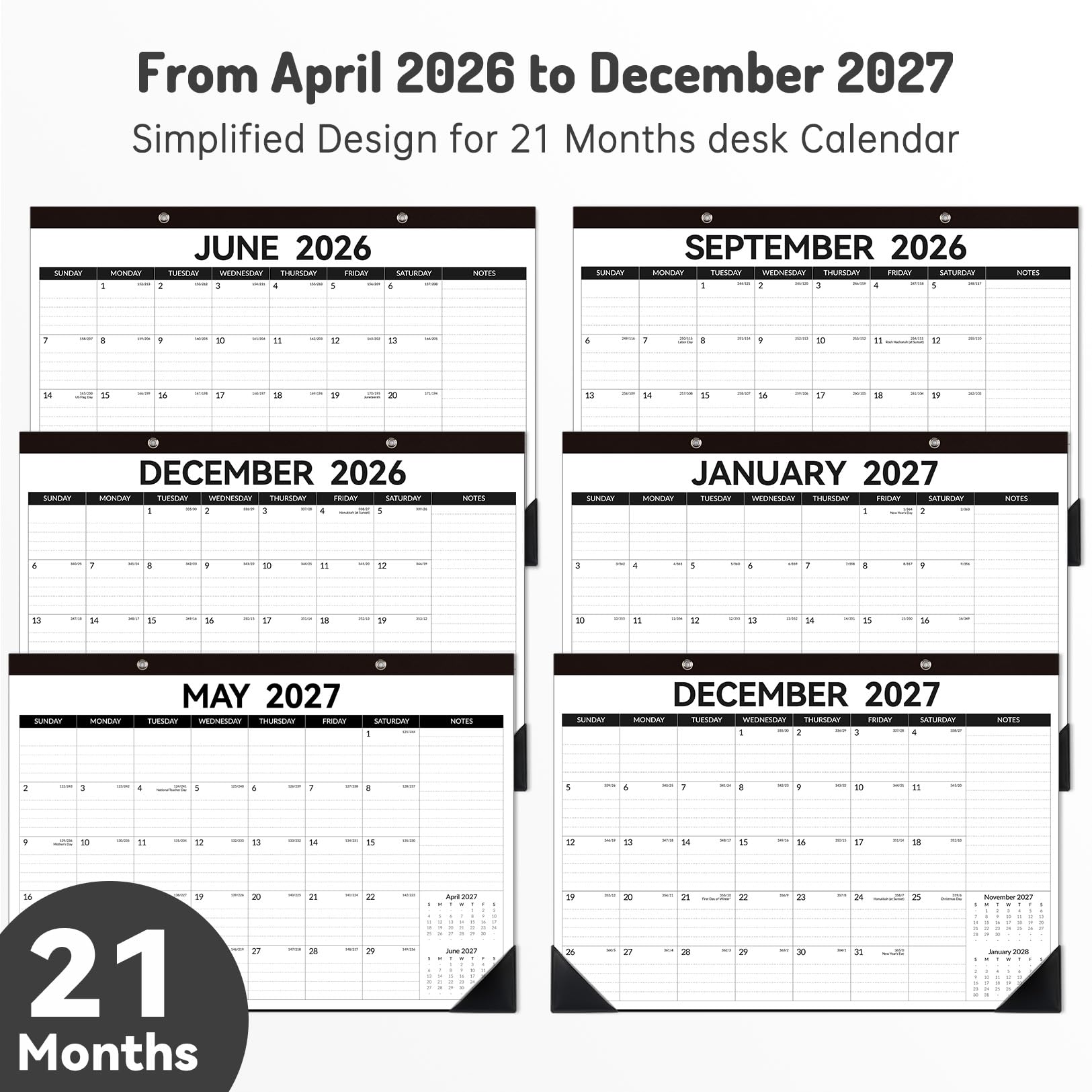 Premium Quality & Durability: Desk calendar 2026-2027 features a waterproof transparent cover and reinforced corners to resist spills and dirt, ensuring your calendar stays in perfect condition even with frequent handling.