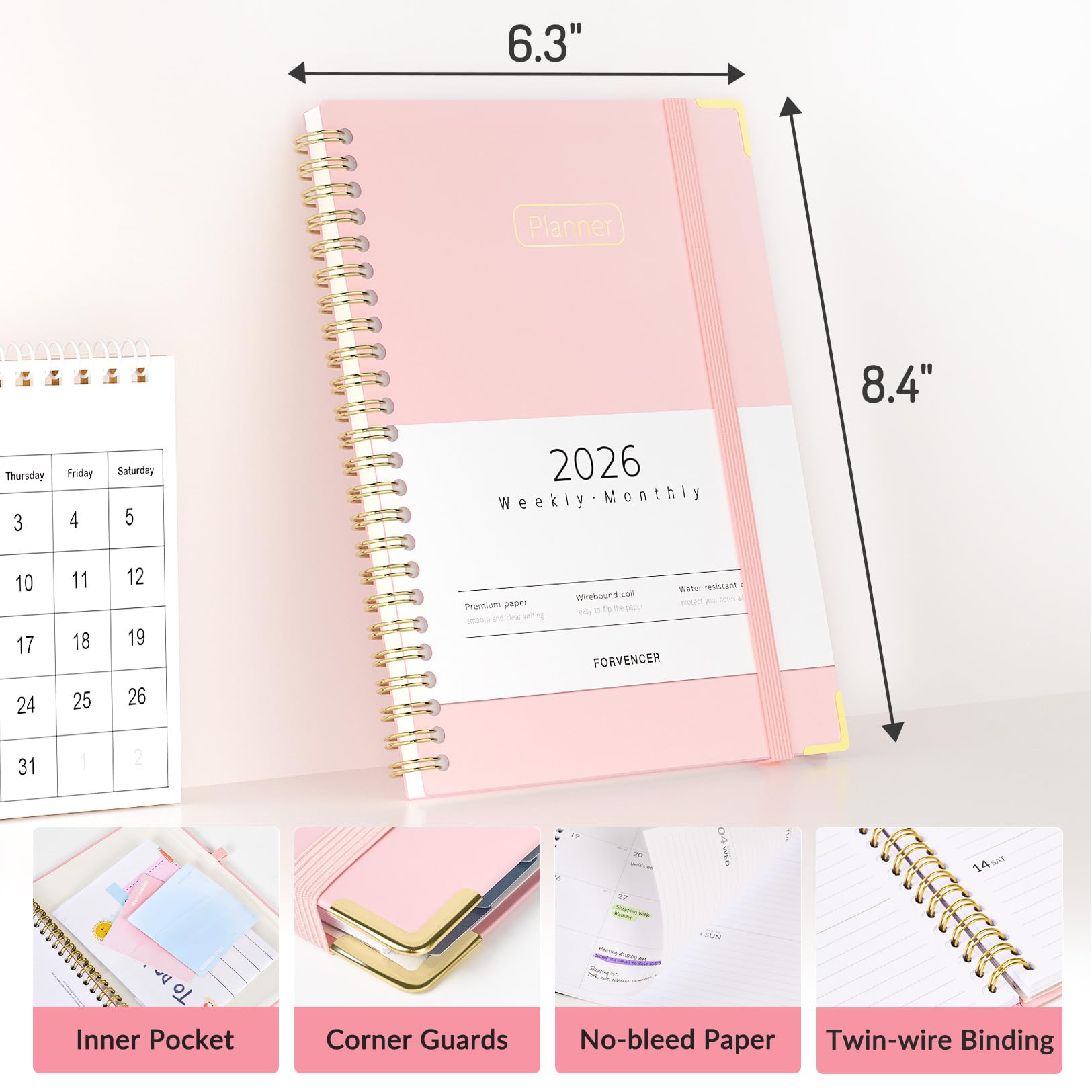 2026 Planner with Simple Layout: Come with 12 months (Jan 2026 - Dec 2026) of monthly and weekly pages, plus 3 additional monthly pages (Oct 2025 - Dec 2025), helping you plan ahead right now! This calendar planner features a simplified layout for ease of use, offering spacious writing space to plan your schedule freely. The elegant design with attention-grabbing colors, adds a touch of sophistication to any setting!