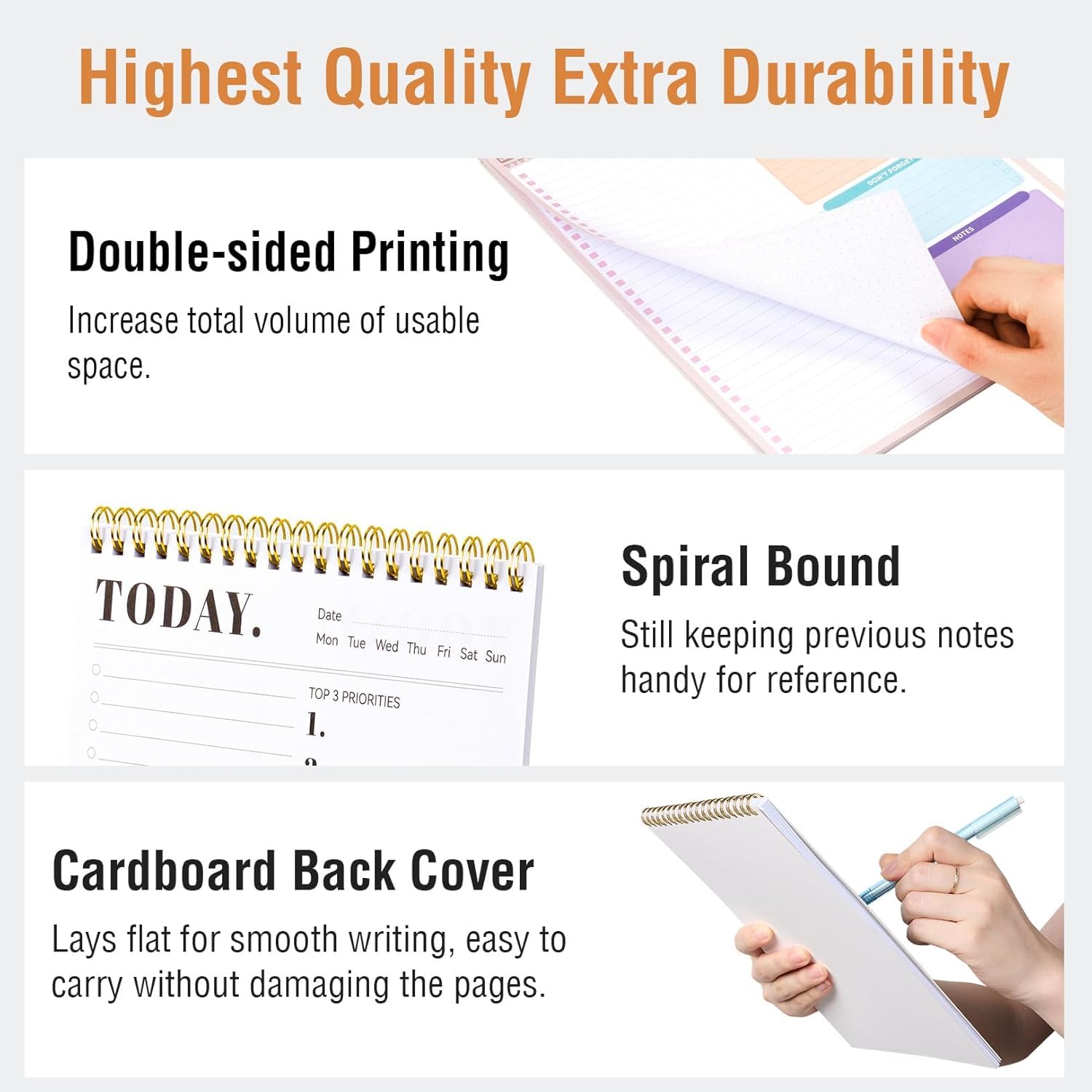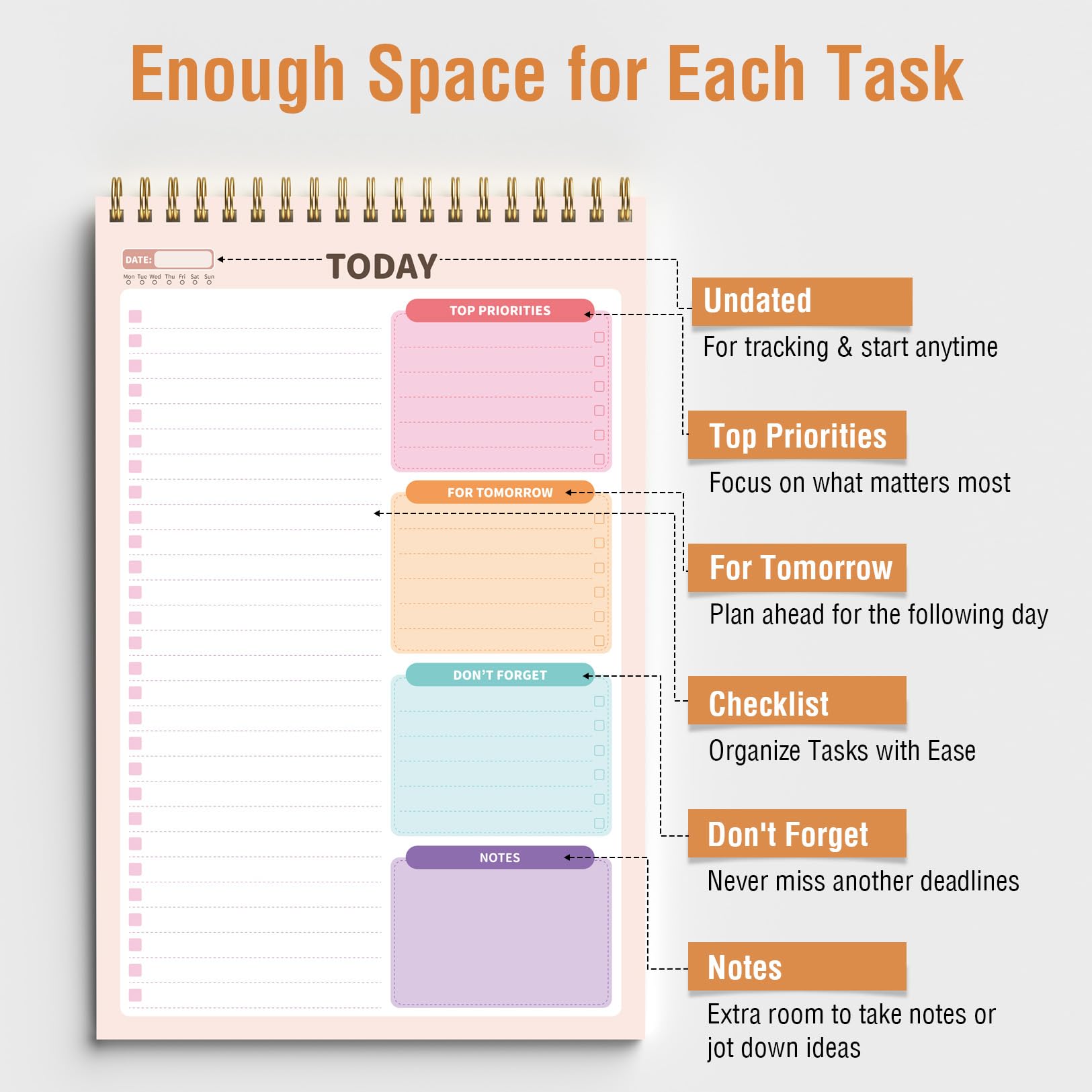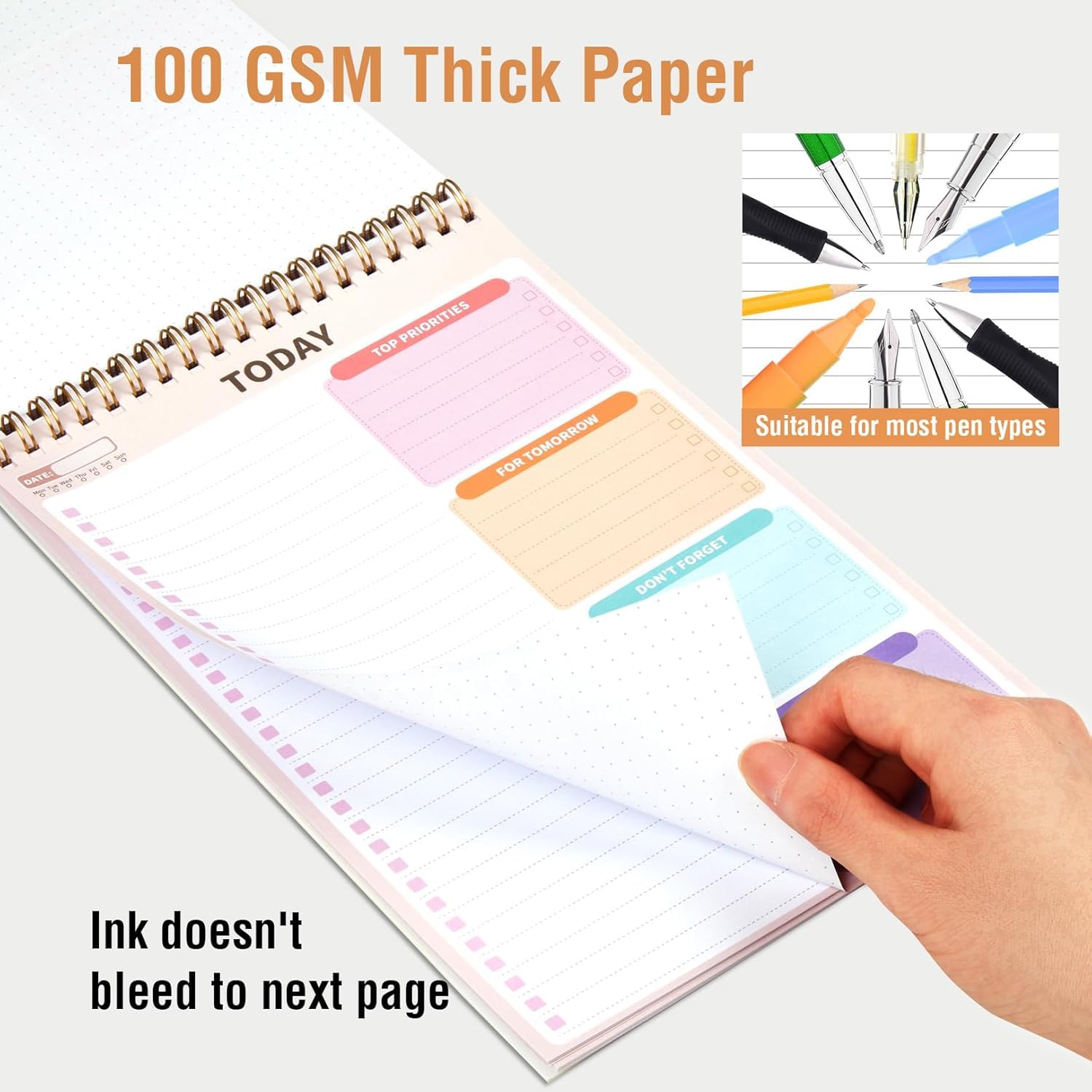 Superior 100GSM Paper: Experience superior, smooth writing without any bleed-through with our ink-friendly paper. Offers 42 Sheets, for almost 3 month of managing your to-do lists. Ideal for organizing home, office, and school tasks
