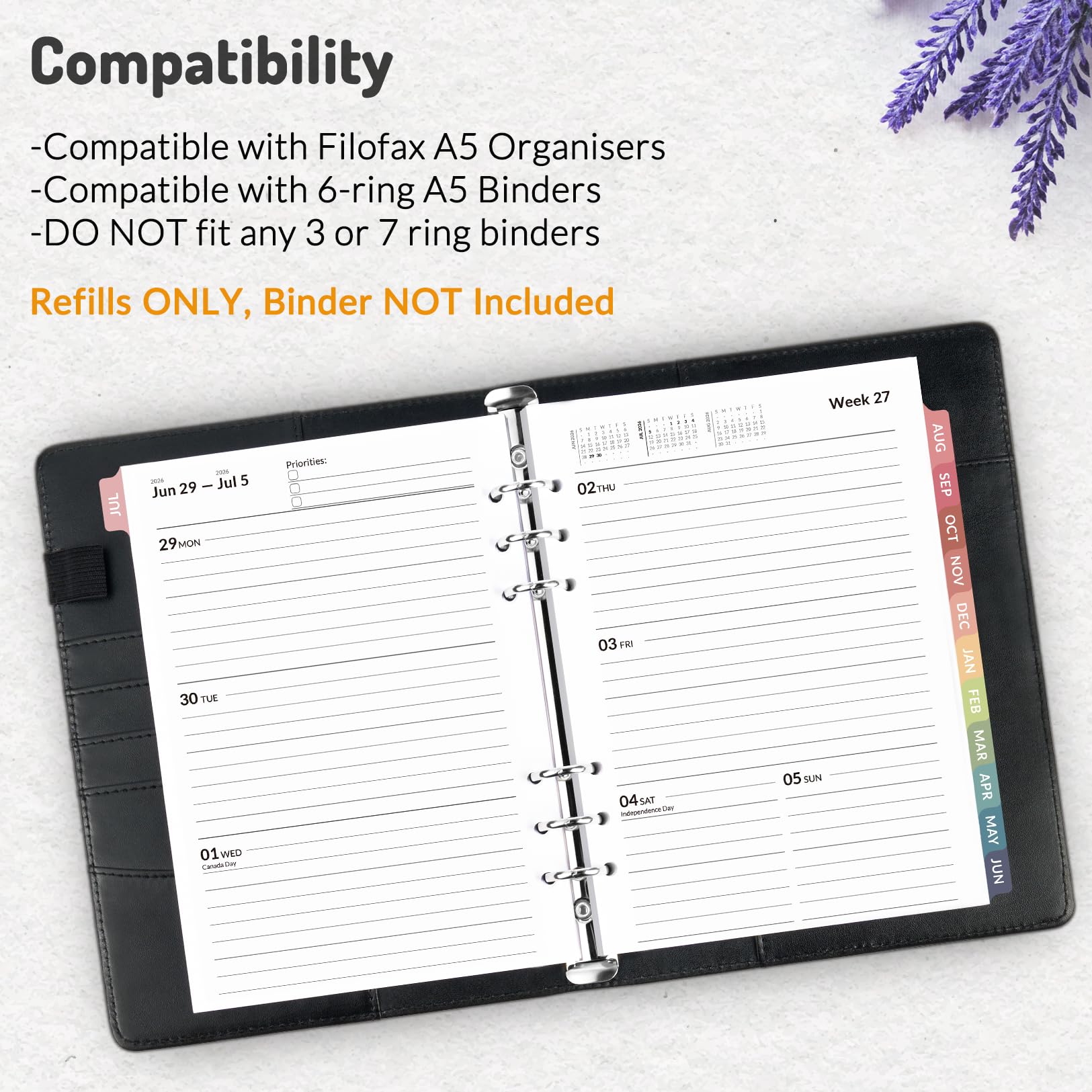 Compatibility & Refills Only: Compatible with Filofax A5 Organisers, A5 6-ring binders. DO NOT fit any 3 or 7 ring binders. Refills only, the binder is NOT included