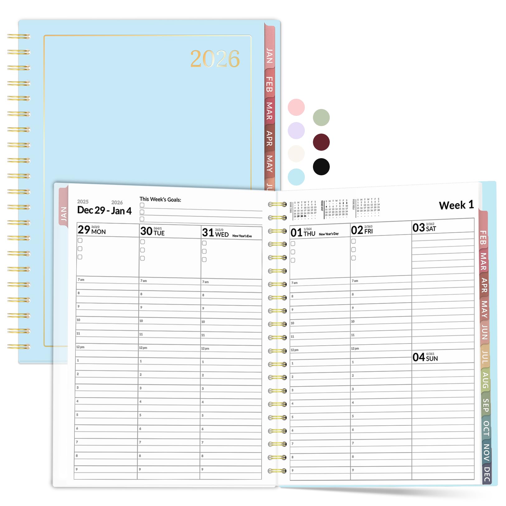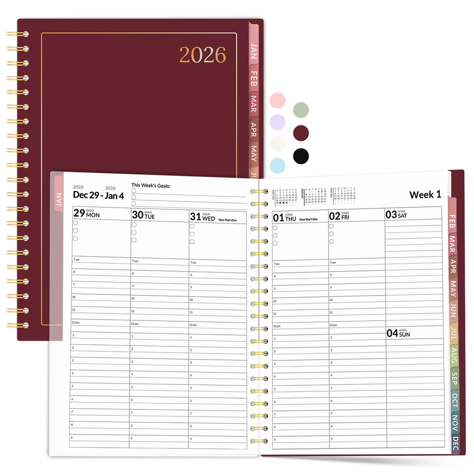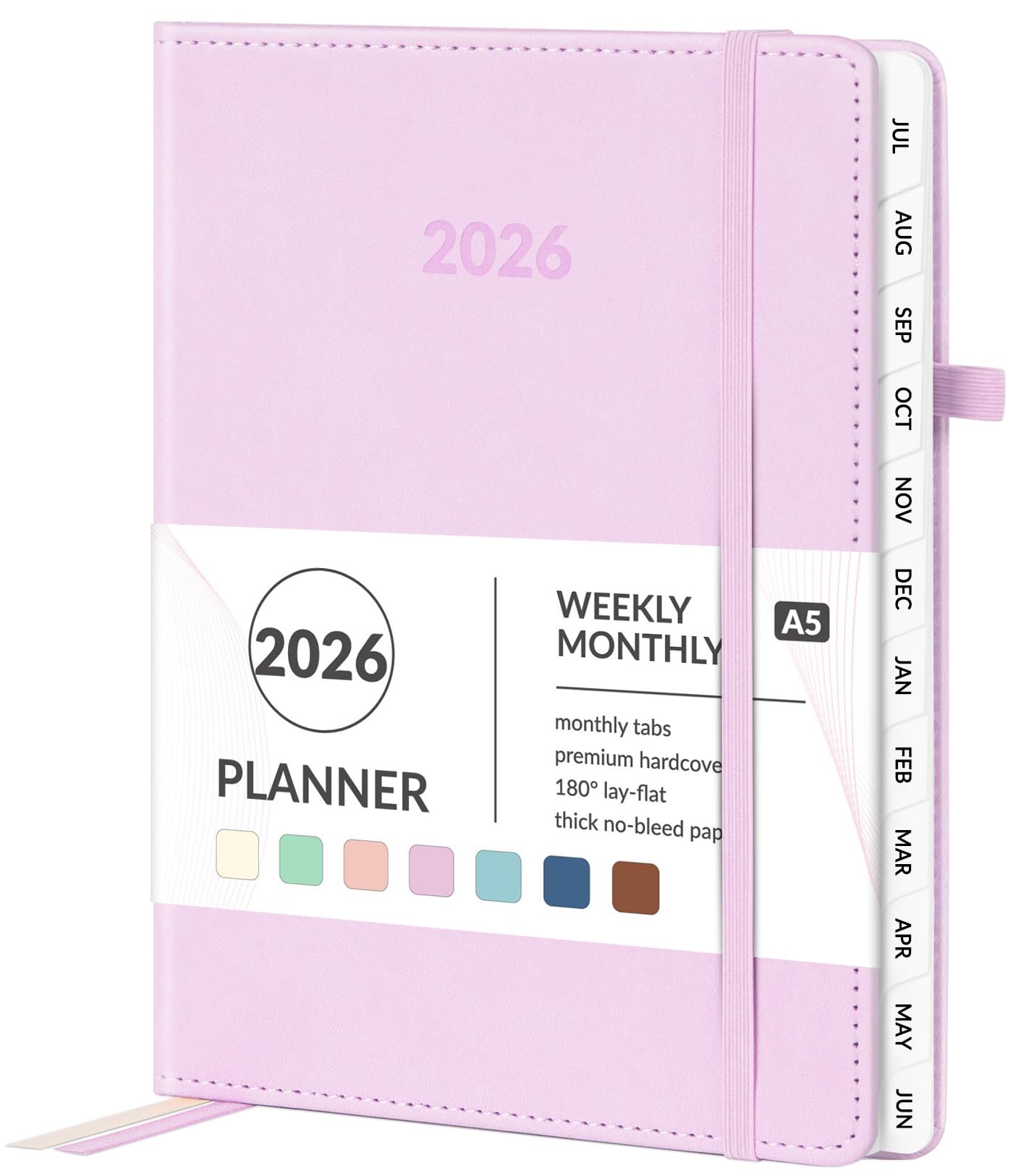 Forvencer 2026 Planner, Weekly Monthly Planners with Month Tabs, 12 Months (Jan 2026 - Dec 2026), A5(5.8"×8.3"), Daily Academic Calendar with Elastic Band, Small Hardcover Agenda, for Teacher, School