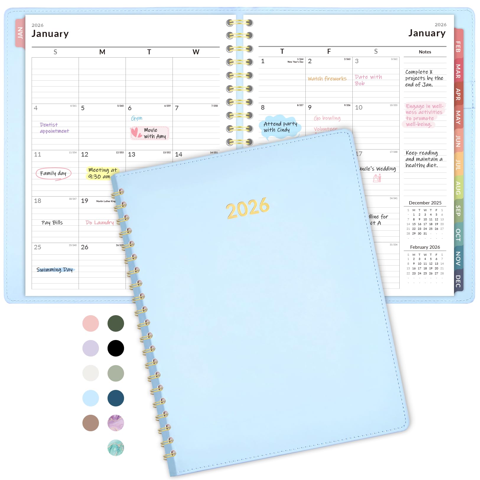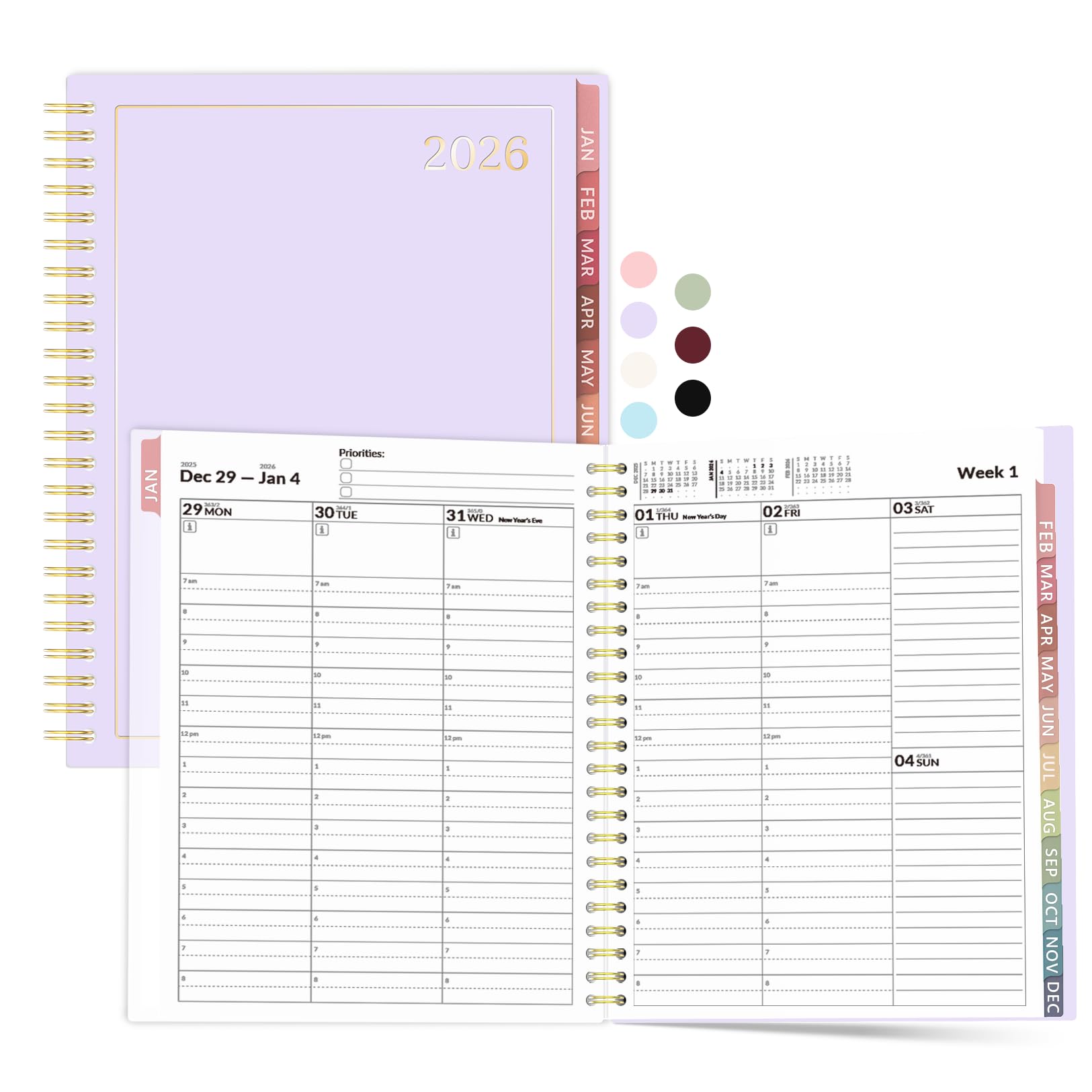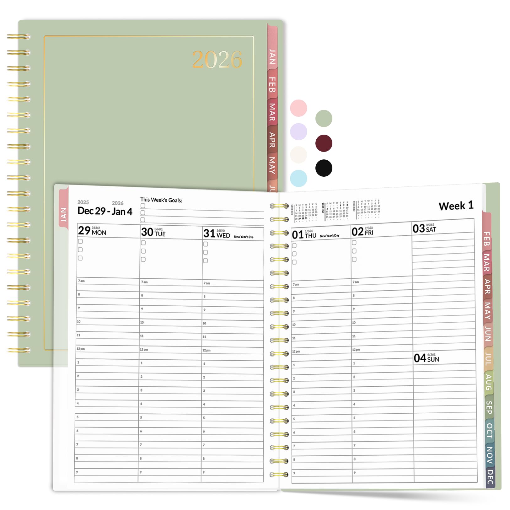 Forvencer 2026 Planner, Weekly Monthly Planners with Month Tabs, 12 Months (Jan 2026 - Dec 2026), A5(5.8"×8.3"), Daily Academic Calendar with Elastic Band, Small Hardcover Agenda, for Teacher, School