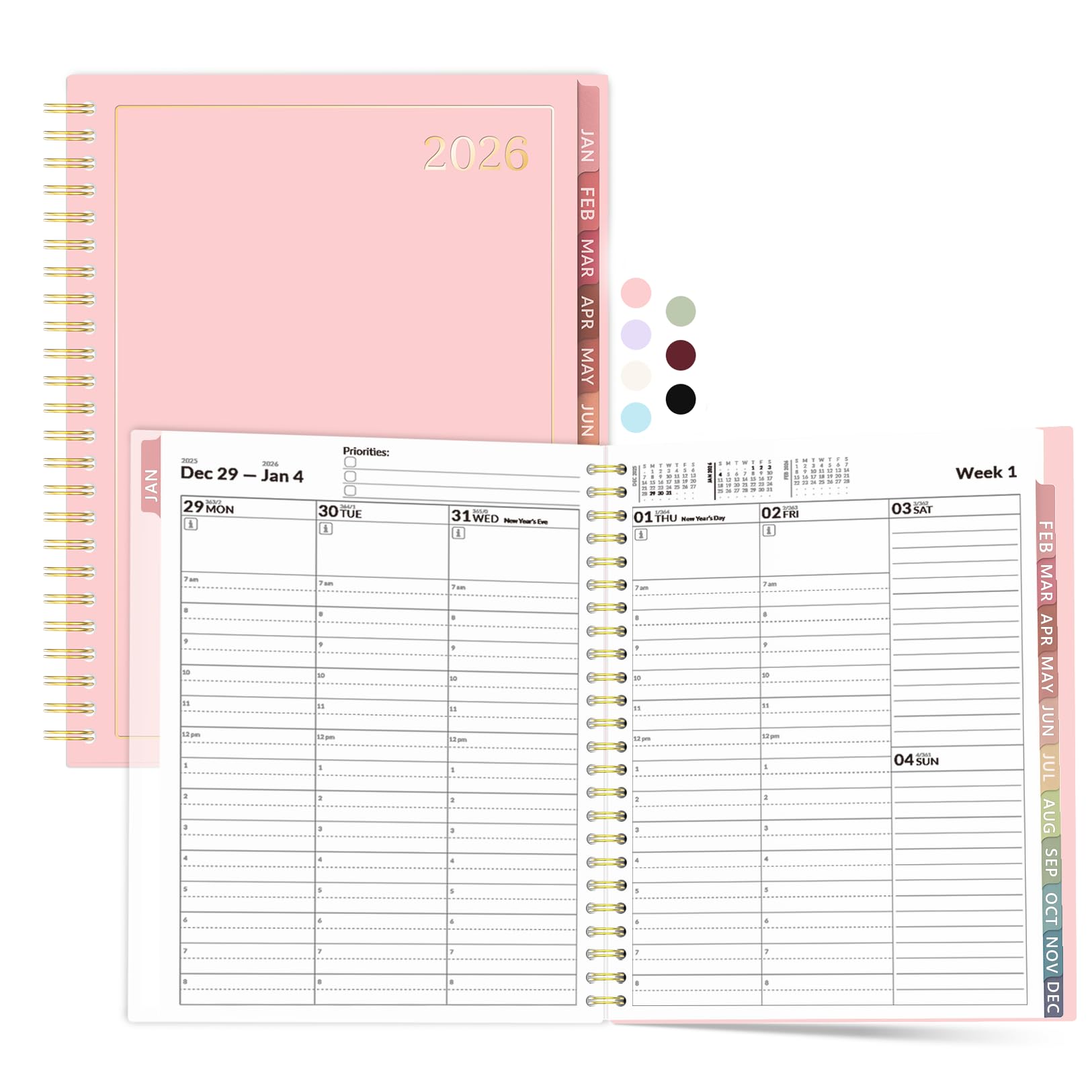 Forvencer Planner 2026-2027, 18 Month Weekly and Monthly Calendar Planner, Jan 2026 -June 2027, 6.3" x 8.4", Daily Agenda Book with Tabs, College School Supplies for Student Teacher Home, A5, Pink