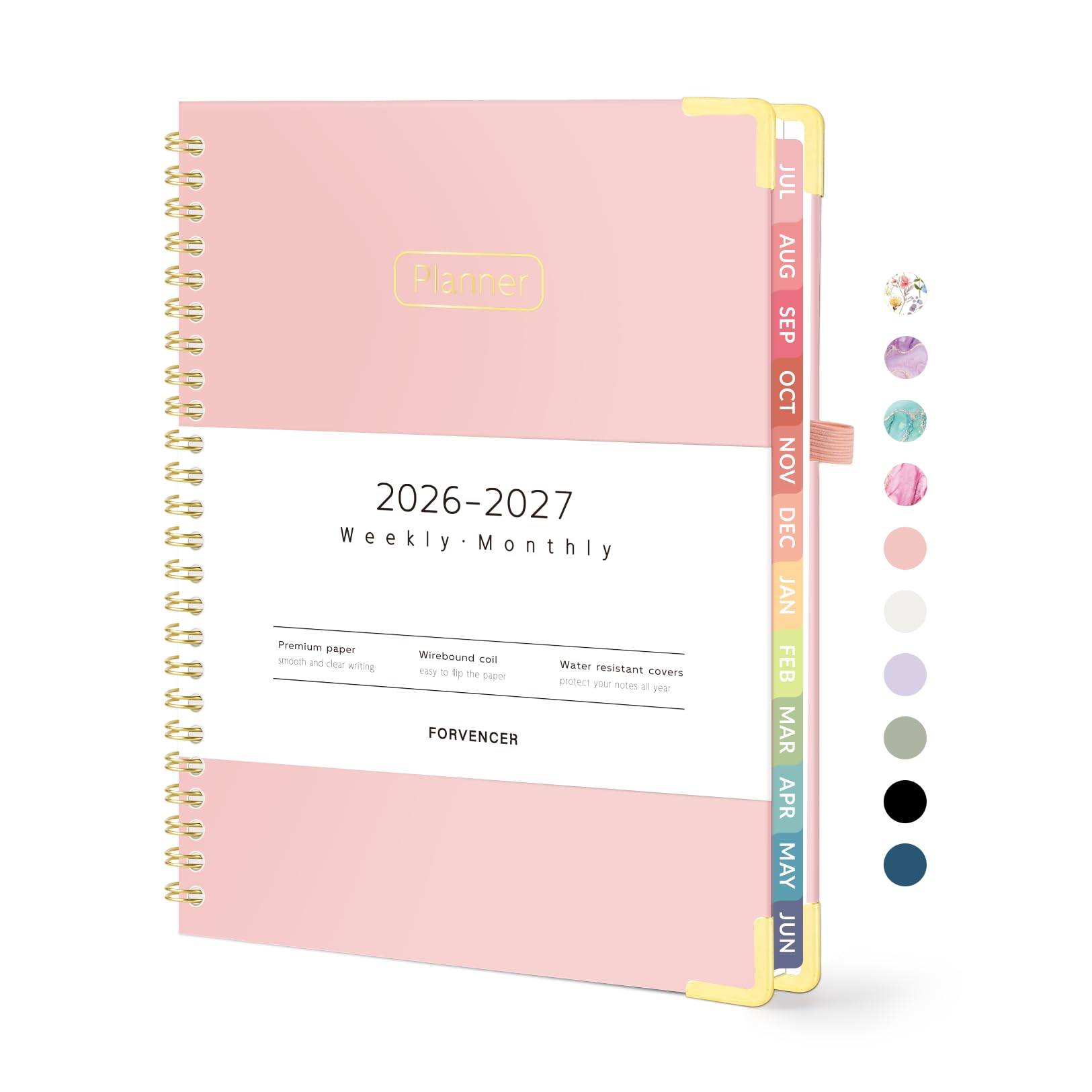 Forvencer Academic Planner 2026-2027, Hardcover Calendar Planner Weekly & Monthly, July 2026 - June 2027, 6" x 8", Daily Agenda with Tabs, College School Organizer for Student Teacher, Pink