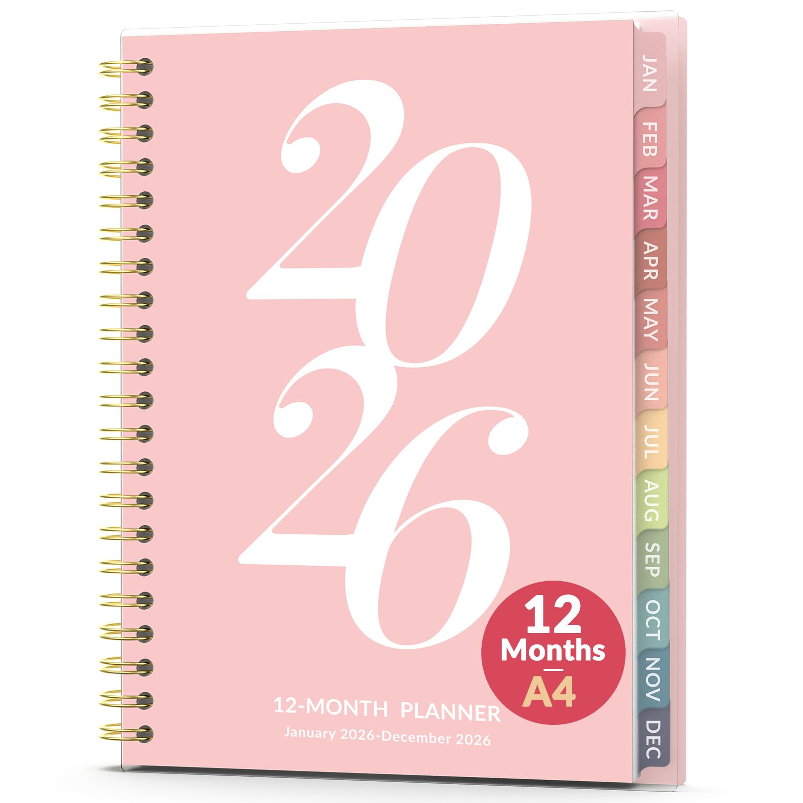 Forvencer 2026 Planner, Hardcover Calendar Planner Weekly and Monthly, Jan 2026 - Dec 2026, 6" x 8", Spiral Agenda Book with Tabs, Exquisite Daily Journal Organizer for Home School, Pink