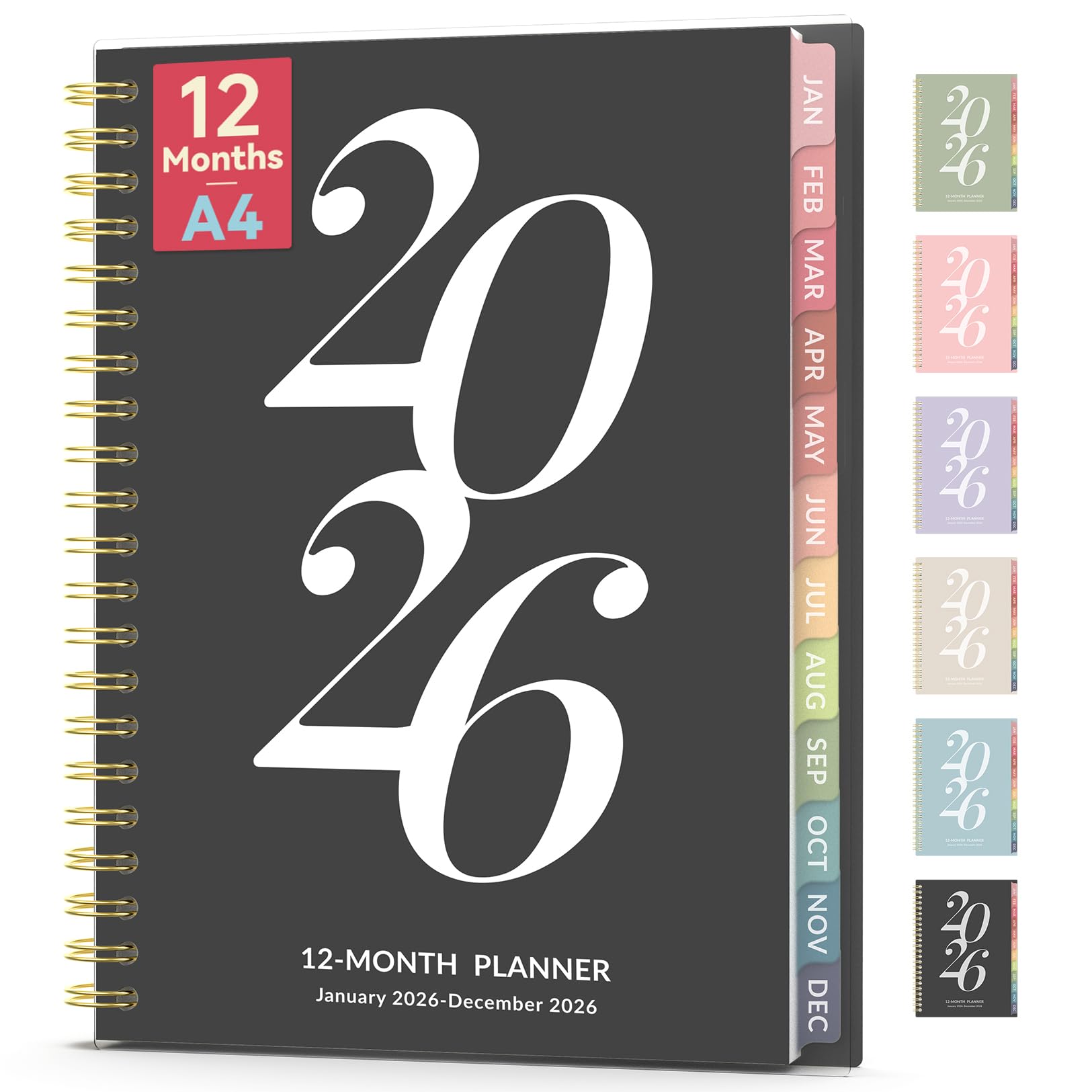 Forvencer 2026 Planner, Hardcover Calendar Planner Weekly and Monthly, Jan 2026 - Dec 2026, 6" x 8", Spiral Agenda Book with Tabs, Exquisite Daily Journal Organizer for Home School, Black
