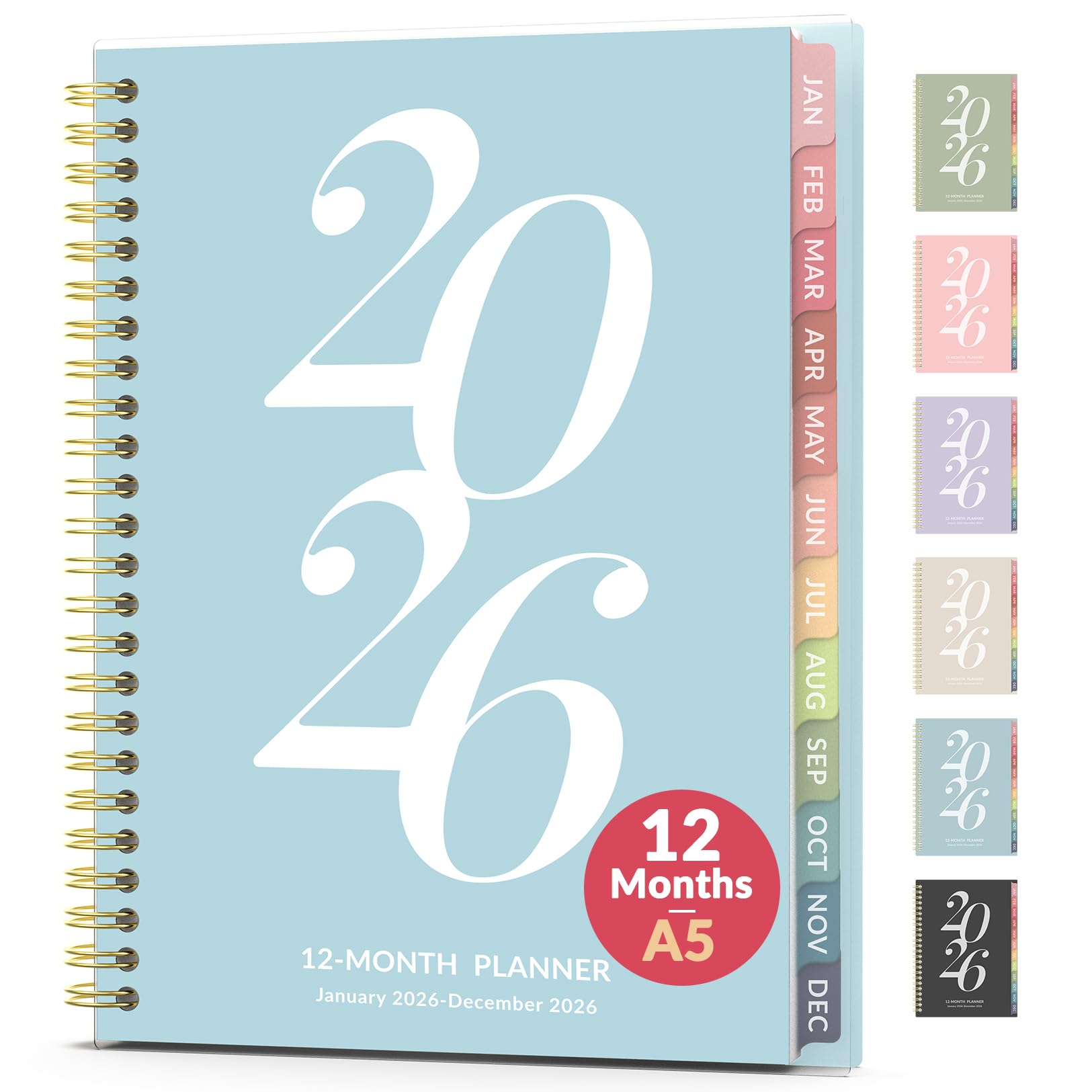 2026 Planner Weekly and Monthly, Jan - Dec 2026, 6.3" x 8.4”, Small Agenda Planner for Women, Aesthetic Calendar Planner with Spiral Bound, Month Tab, Flexible Cover for School, Office (A5, Blue)