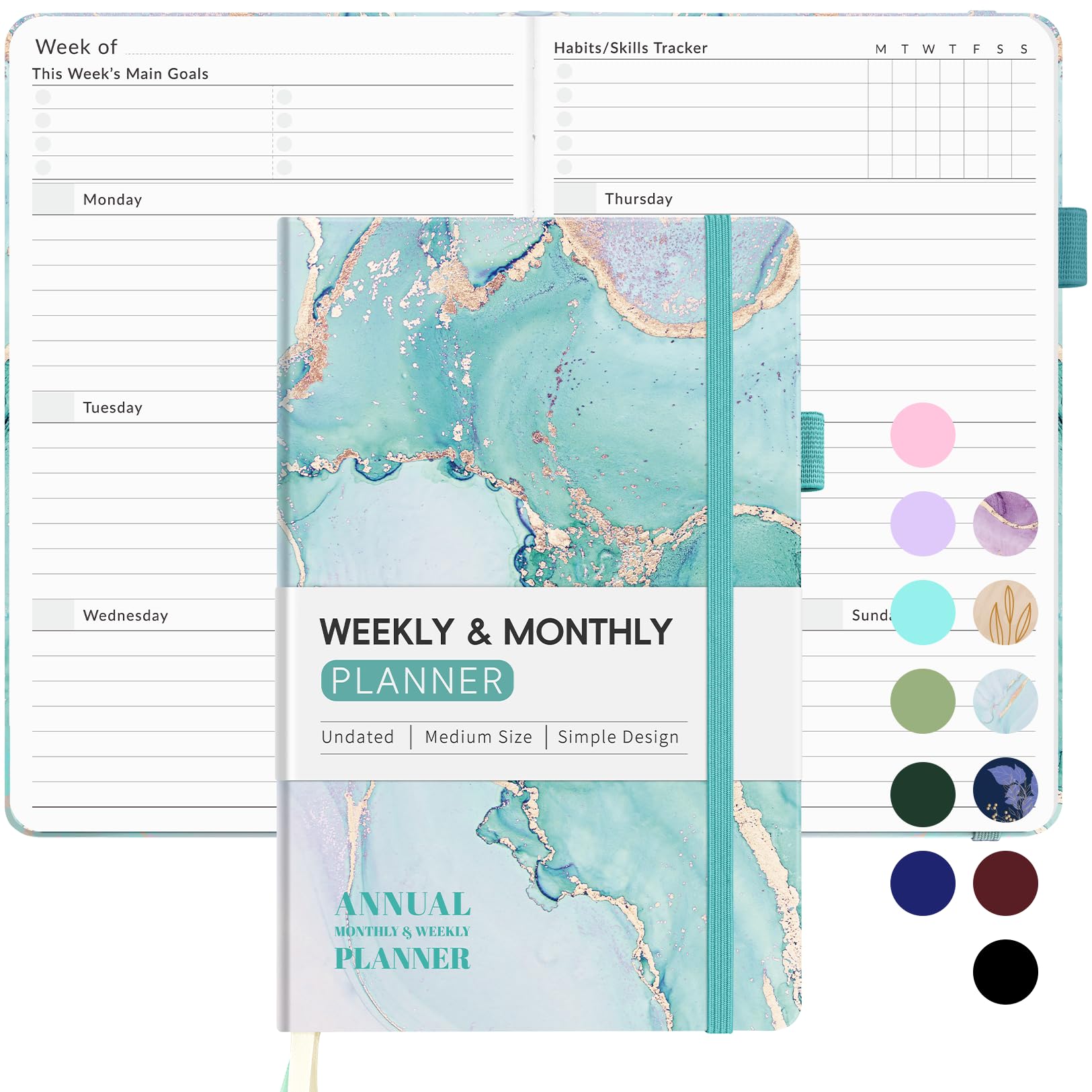 Undated Weekly Planner for 2026, Forvencer Simplified Weekly & Monthly Calendar Planner, Cute Daily Organizer Notebook, Agenda Journal to Track Goals & Tasks, Start Anytime, A5 Size, Teal Marble