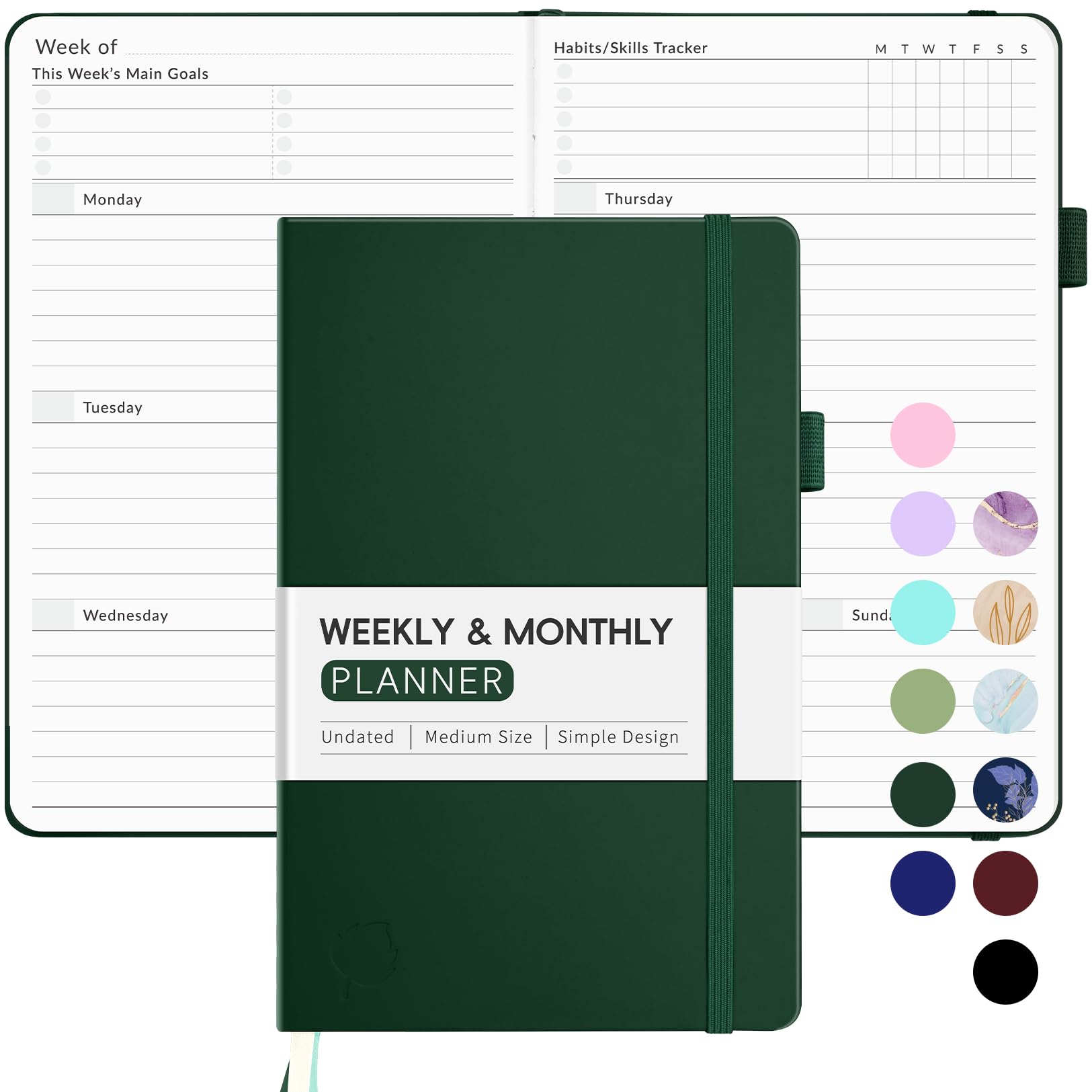 Undated Weekly Planner for 2026, Forvencer Simplified Weekly & Monthly Calendar Planner, Cute Daily Organizer Notebook, Agenda Journal to Track Goals & Tasks, Start Anytime, A5 Size, Dark Green