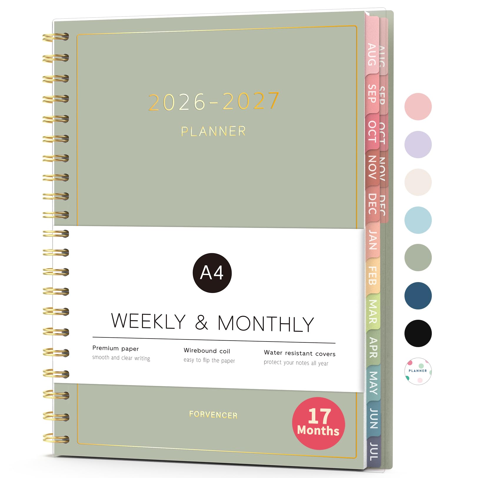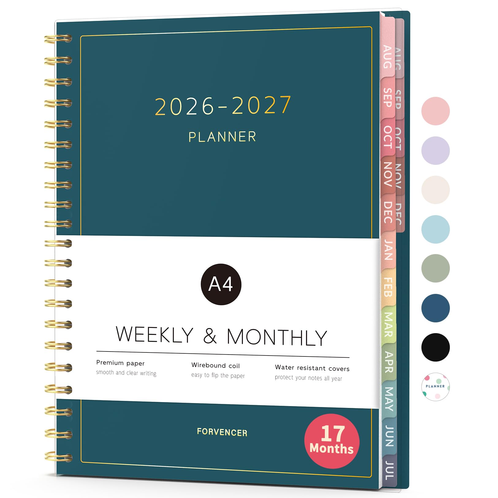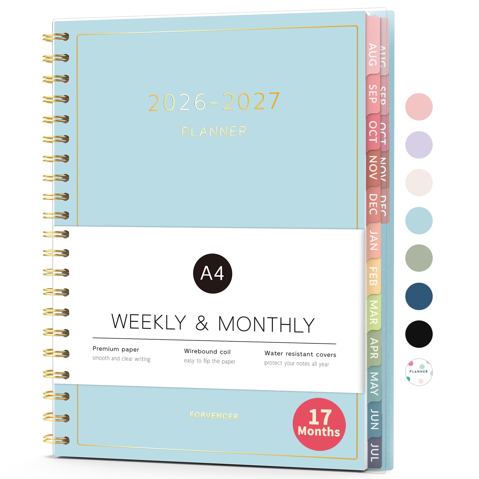 Aug 2026 - Dec 2027 Planner, Forvencer 17 Month Academic Planner 2026-2027, 8.5" x 11", Calendar Planner Weekly and Monthly, Daily Agenda, School Supplies for Student Teacher, A4, Polka Dot Style