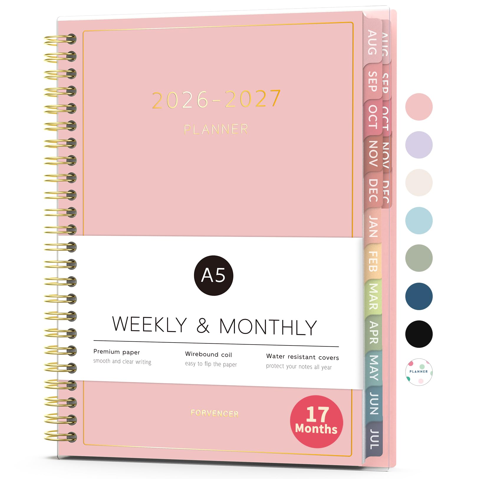 Aug 2026 - Dec 2027 Planner, Forvencer 17 Month Academic Planner 2026-2027, 6.3" x 8.4", Calendar Planner Weekly and Monthly, Daily Agenda Book, College School Supplies for Student Teacher, A5, Pink