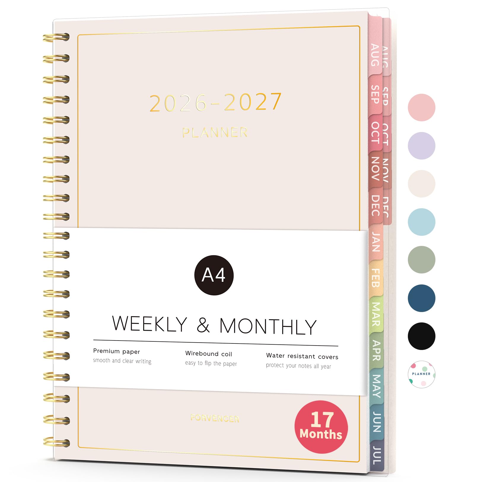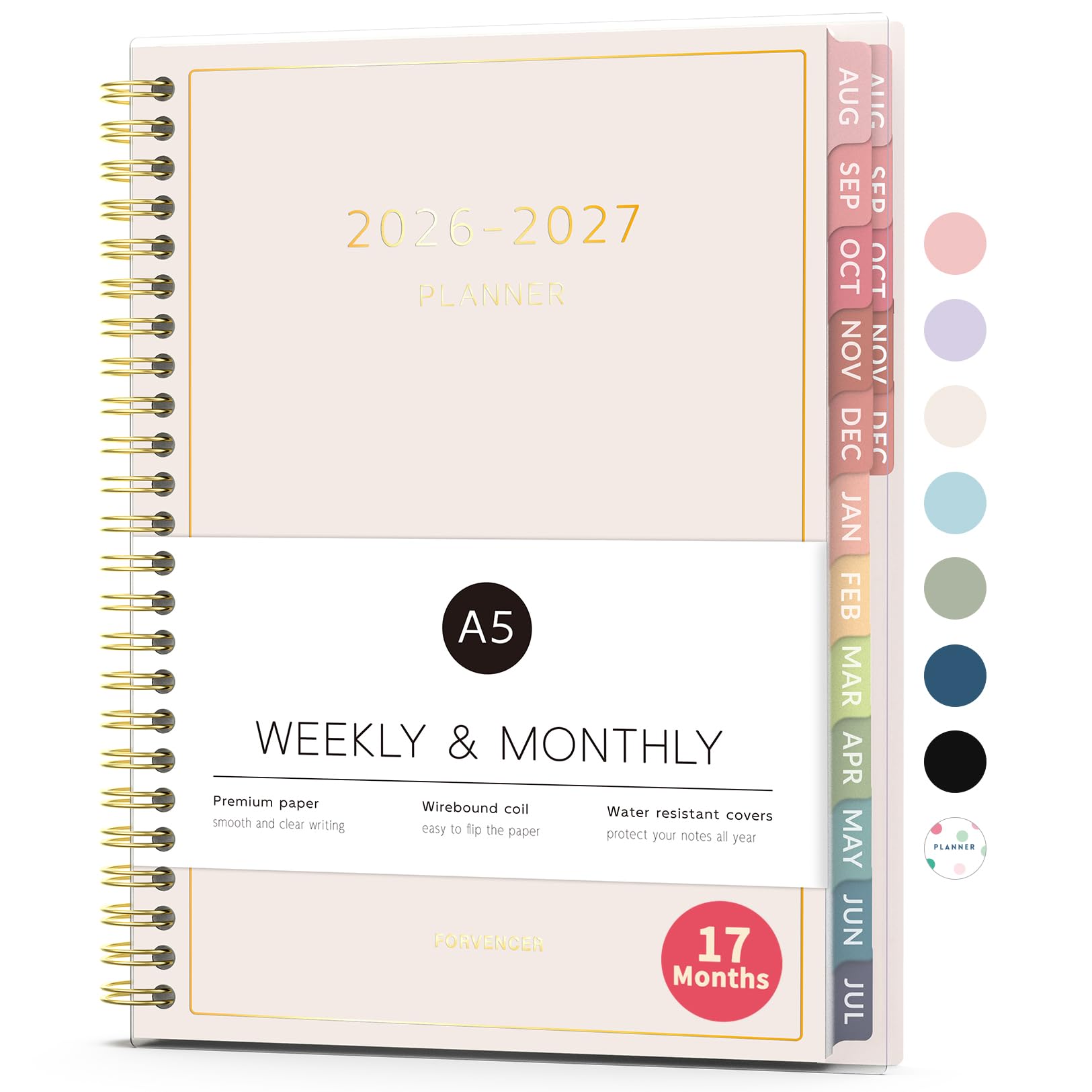 Aug 2026 - Dec 2027 Planner, Forvencer 17 Month Academic Planner 2026-2027, 6.3" x 8.4", Calendar Planner Weekly and Monthly, Daily Agenda Book, College School Supplies for Student Teacher, A5, Beige