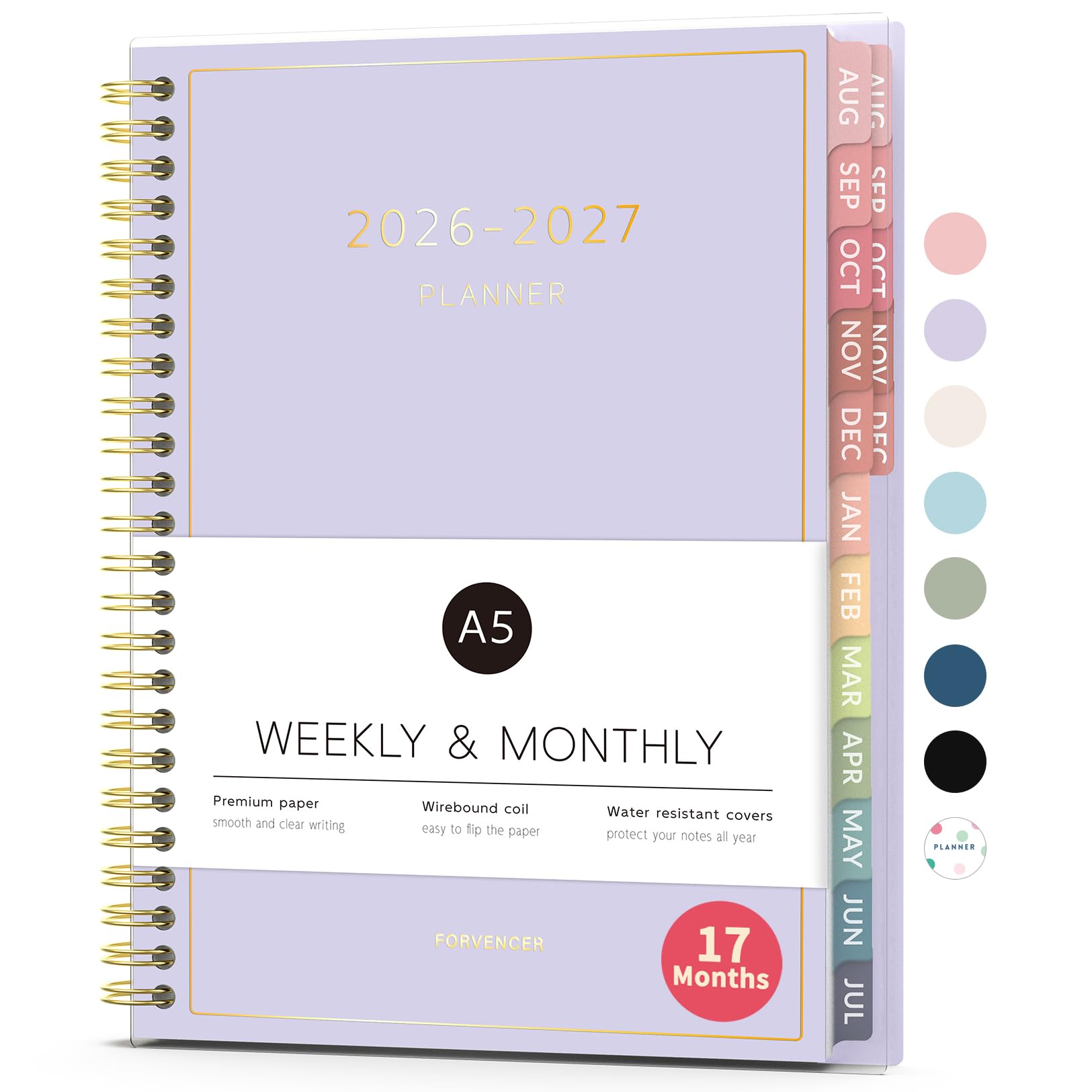 Aug 2026 - Dec 2027 Planner, Forvencer 17 Month Academic Planner 2026-2027, 6.3" x 8.4", Calendar Planner Weekly and Monthly, Daily Agenda Book, College School Supplie for Student Teacher, A5, Purple