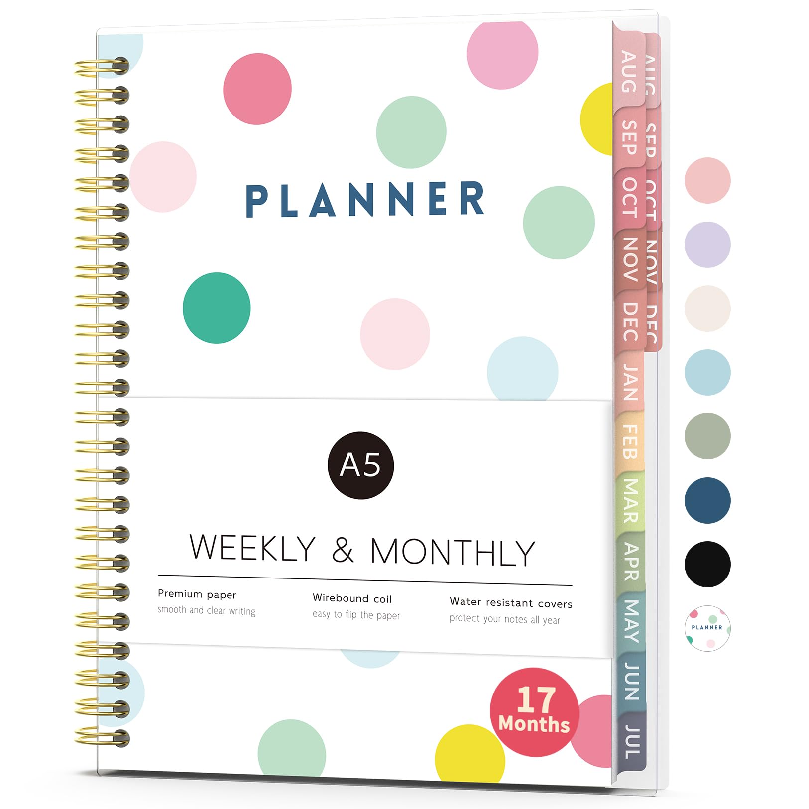 Aug 2026 - Dec 2027 Planner, Forvencer 17 Month Academic Planner 2026-2027, 6.3" x 8.4", Calendar Planner Weekly and Monthly, Daily Agenda, School Supplies for Student Teacher, A5, Polka Dot Style