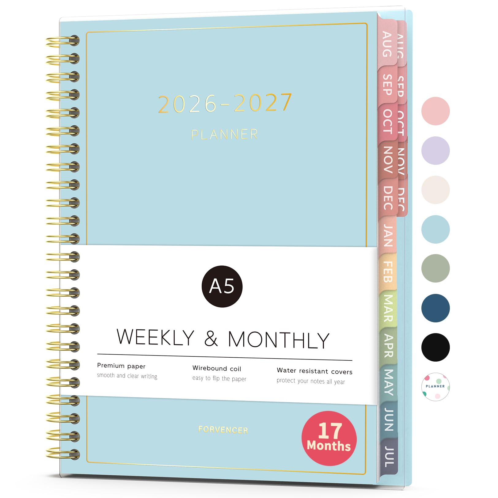 Aug 2026 - Dec 2027 Planner, Forvencer 17 Month Academic Planner 2026-2027, 6.3" x 8.4", Calendar Planner Weekly and Monthly, Daily Agenda Book, College School Supplies for Student Teacher, A5, Blue