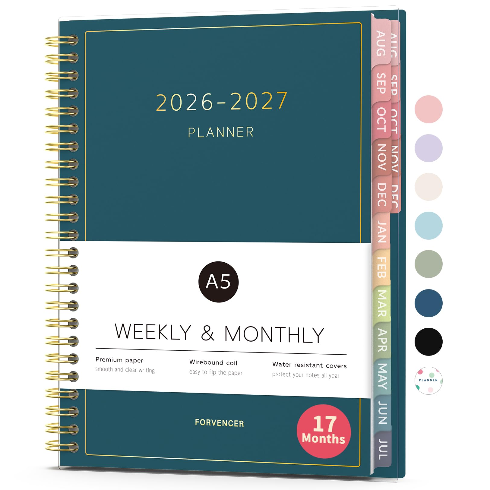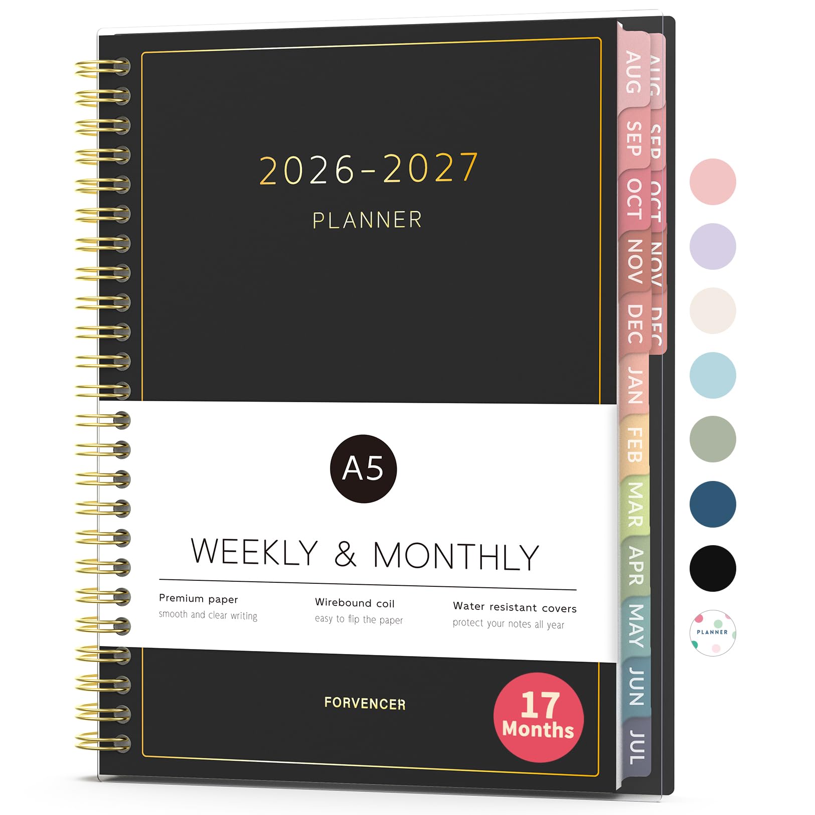 Aug 2026 - Dec 2027 Planner, Forvencer 17 Month Academic Planner 2026-2027, 6.3" x 8.4", Calendar Planner Weekly and Monthly, Daily Agenda Book, College School Supplies for Student Teacher, A5, Black