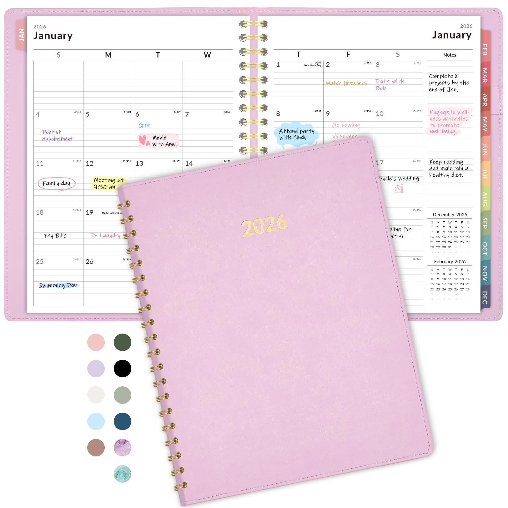 Forvencer 2026 Planner Weekly and Monthly, Jan 2026 -Dec 2026, Vegan Leather Cover Calendar Planner, 8.5" x 11" Agenda with Color Tabs, Inner Pocket, Spiral, 2026 Planner for Office School Supplies