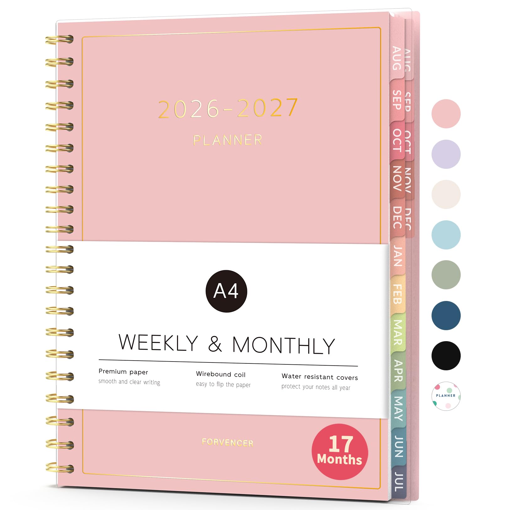 Aug 2026 - Dec 2027 Planner, Forvencer 17 Month Academic Planner 2026-2027, 8.5" x 11", Calendar Planner Weekly and Monthly, Daily Agenda Book, College School Supplies for Student Teacher, A4, Pink