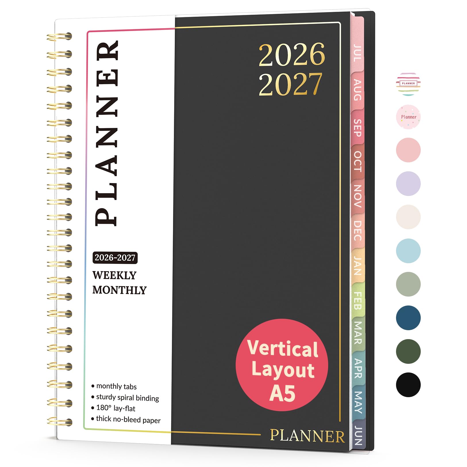 Aug 2026 - Dec 2027 Planner, Forvencer 17 Month Academic Planner 2026-2027, 8.5" x 11", Calendar Planner Weekly and Monthly, Daily Agenda Book, College School Supplies for Student Teacher, A4, Black