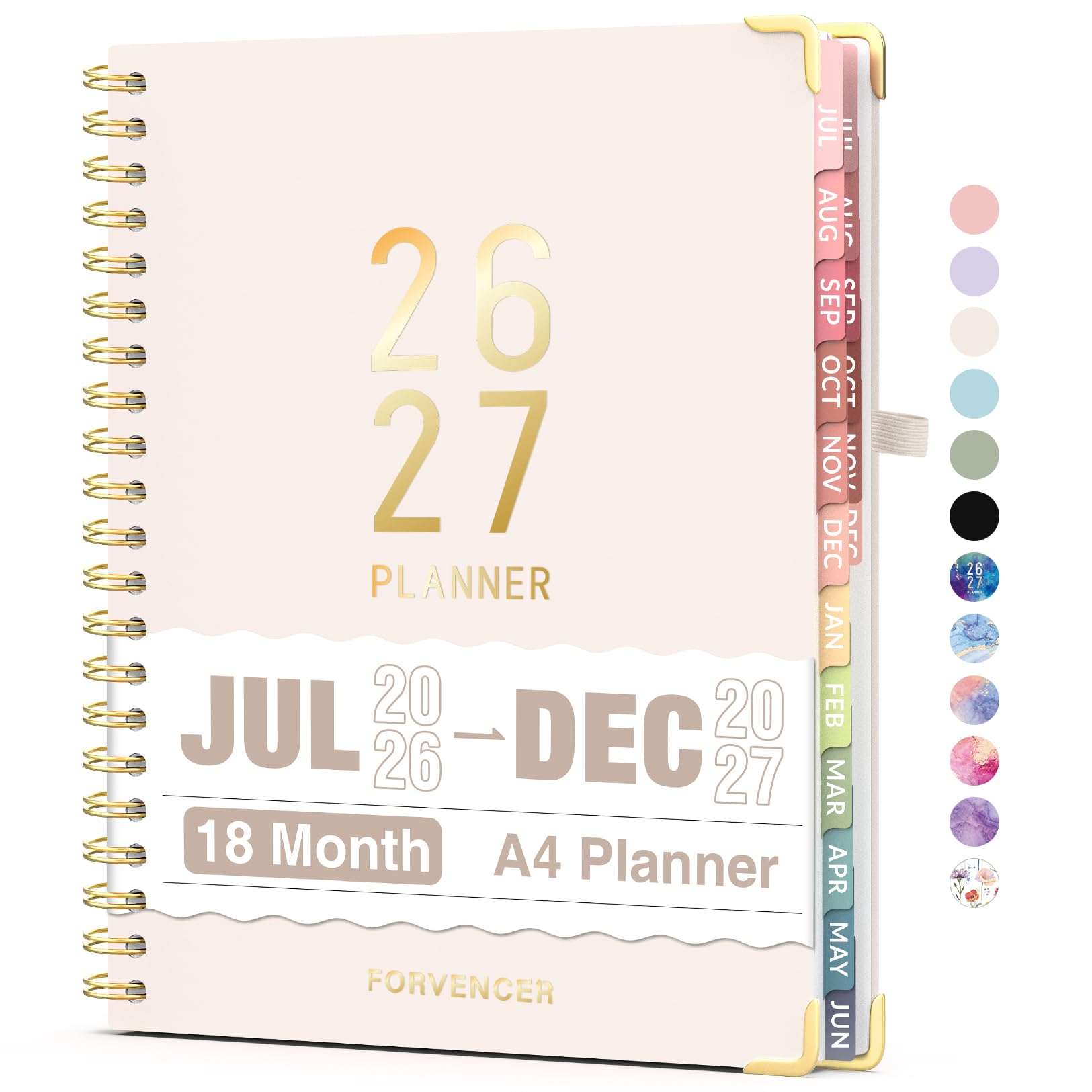 Jul 2026 - Dec 2027 Planner, Forvencer 18 Month Academic Planner 2026-2027, 8.5" x 11", Calendar Planner Weekly and Monthly, Daily Agenda Book, College School Supplies for Student Teacher, A4, Beige