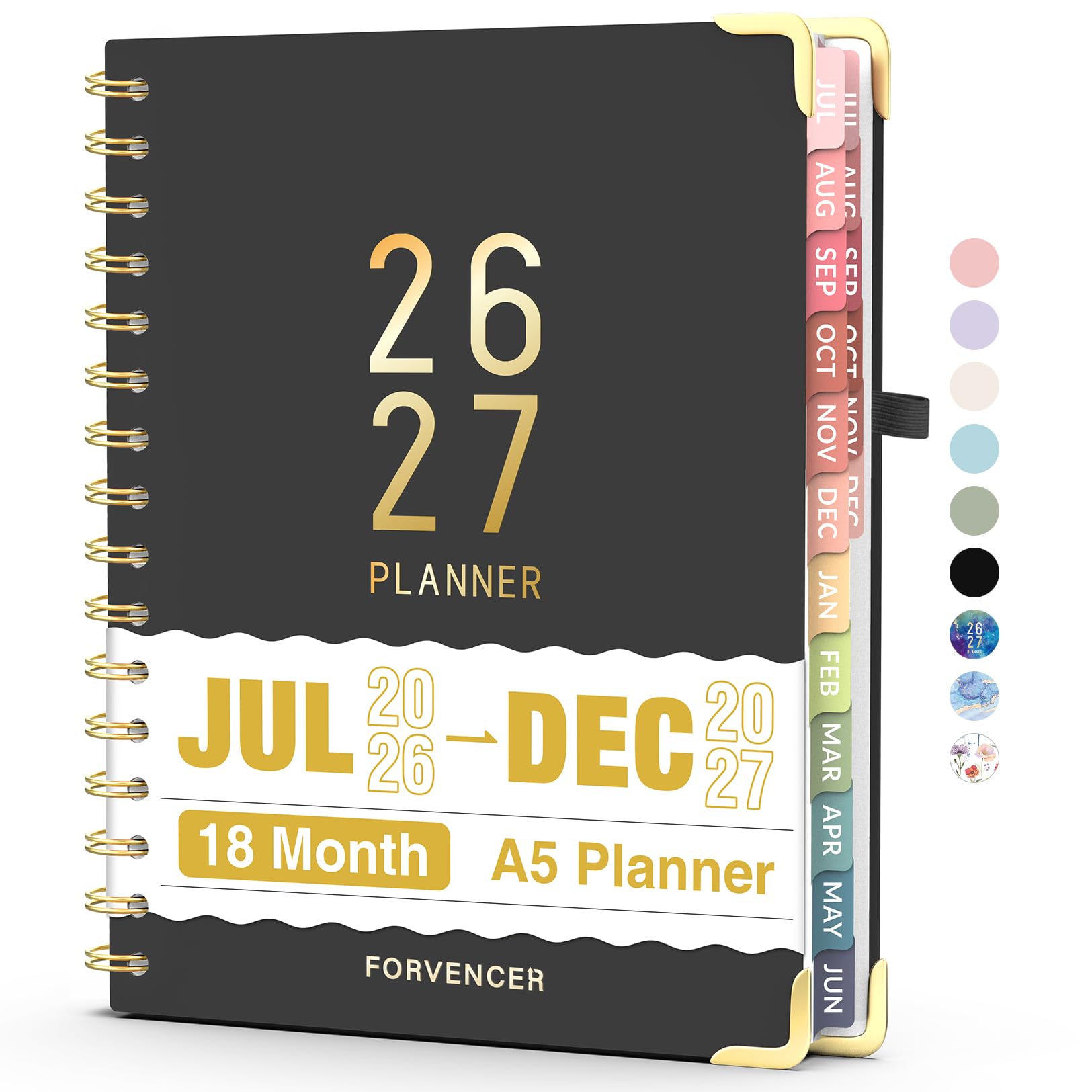 Jul 2026 - Dec 2027 Planner, Forvencer 18 Month Academic Planner 2026-2027, 6.3" x 8.4", Calendar Planner Weekly and Monthly, Daily Agenda Book, College School Supplies for Student Teacher, A5, Black