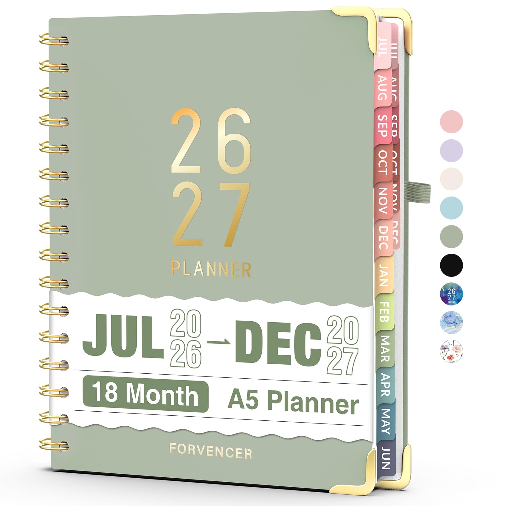 Jul 2026 - Dec 2027 Planner, Forvencer 18 Month Academic Planner 2026-2027, 6.3" x 8.4", Calendar Planner Weekly and Monthly, Daily Agenda Book, College School Supplies for Student Teacher, A5, Green