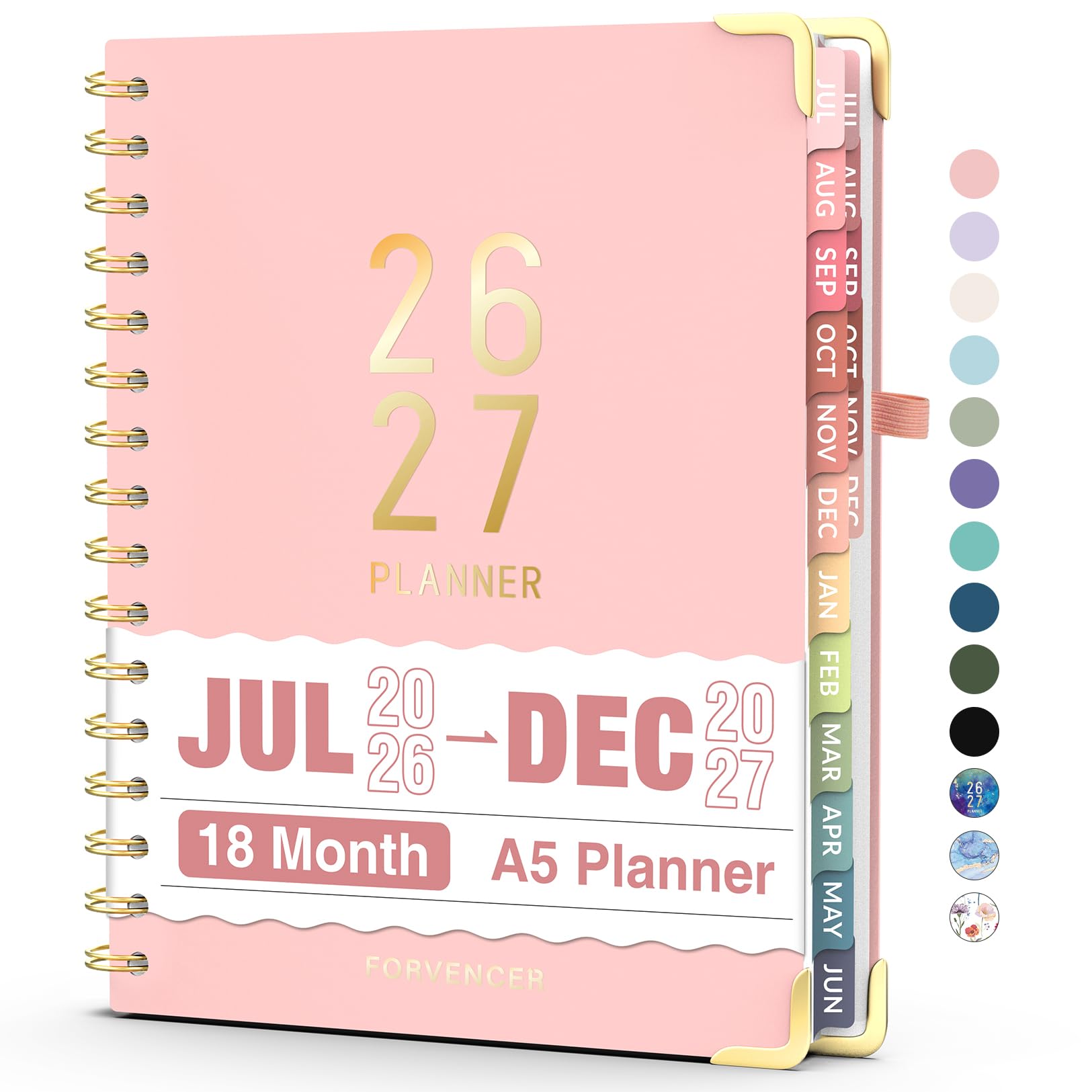 Jul 2026 - Dec 2027 Planner, Forvencer 18 Month Academic Planner 2026-2027, 6.3" x 8.4", Calendar Planner Weekly and Monthly, Daily Agenda Book, College School Supplies for Student Teacher, A5, Pink