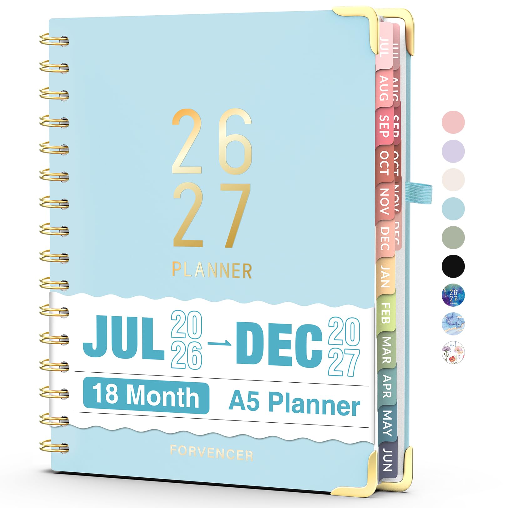 Jul 2026 - Dec 2027 Planner, Forvencer 18 Month Academic Planner 2026-2027, 6.3" x 8.4", Calendar Planner Weekly and Monthly, Daily Agenda Book, College School Supplies for Student Teacher, A5, Blue