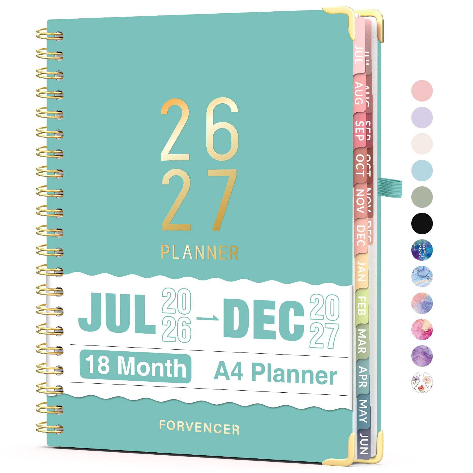 Jul 2026 - Dec 2027 Planner, Forvencer 18 Month Academic Planner 2026-2027, 8.5" x 11", Calendar Planner Weekly and Monthly, Daily Agenda Book, College School Supplies for Student Teacher, A4, Teal