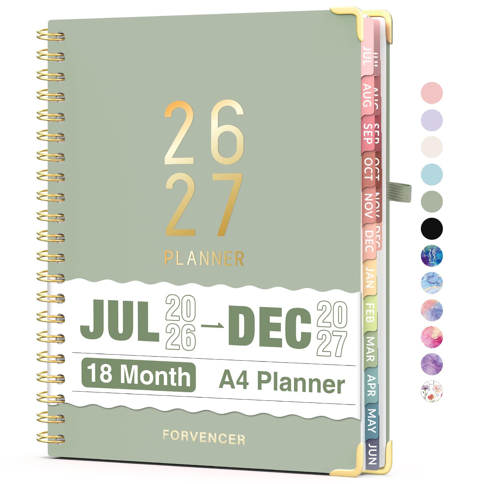 Jul 2026 - Dec 2027 Planner, Forvencer 18 Month Academic Planner 2026-2027, 8.5" x 11", Calendar Planner Weekly and Monthly, Daily Agenda Book, College School Supplies for Student Teacher, A4, Green