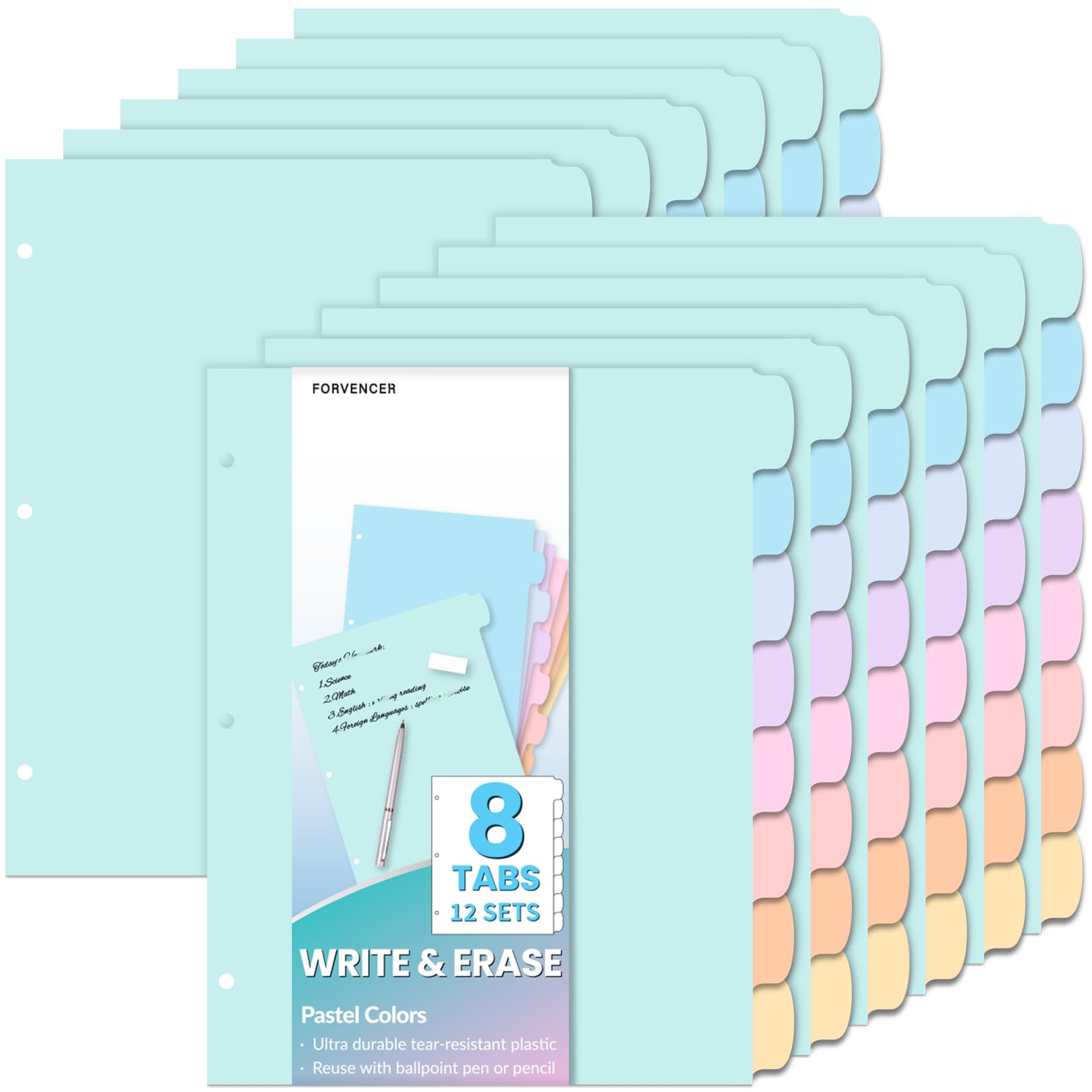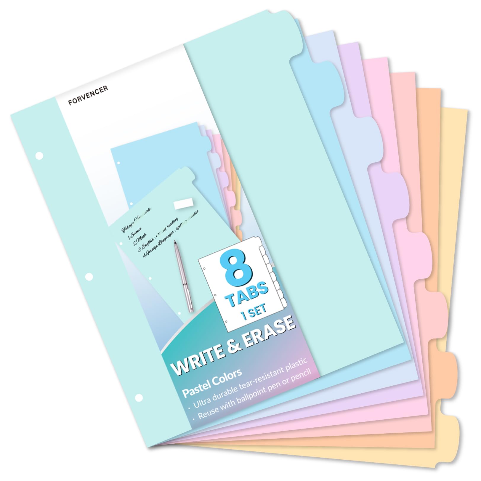 Forvencer 8-Tab Binder Dividers with Tabs, Big Tabs, Write&Erase Plastic Dividers for 3 Ring Binder, Binder Tabs for Organizers, 3 Ring Binder Dividers with Tabs for School Office (Pastels, 1 Set)