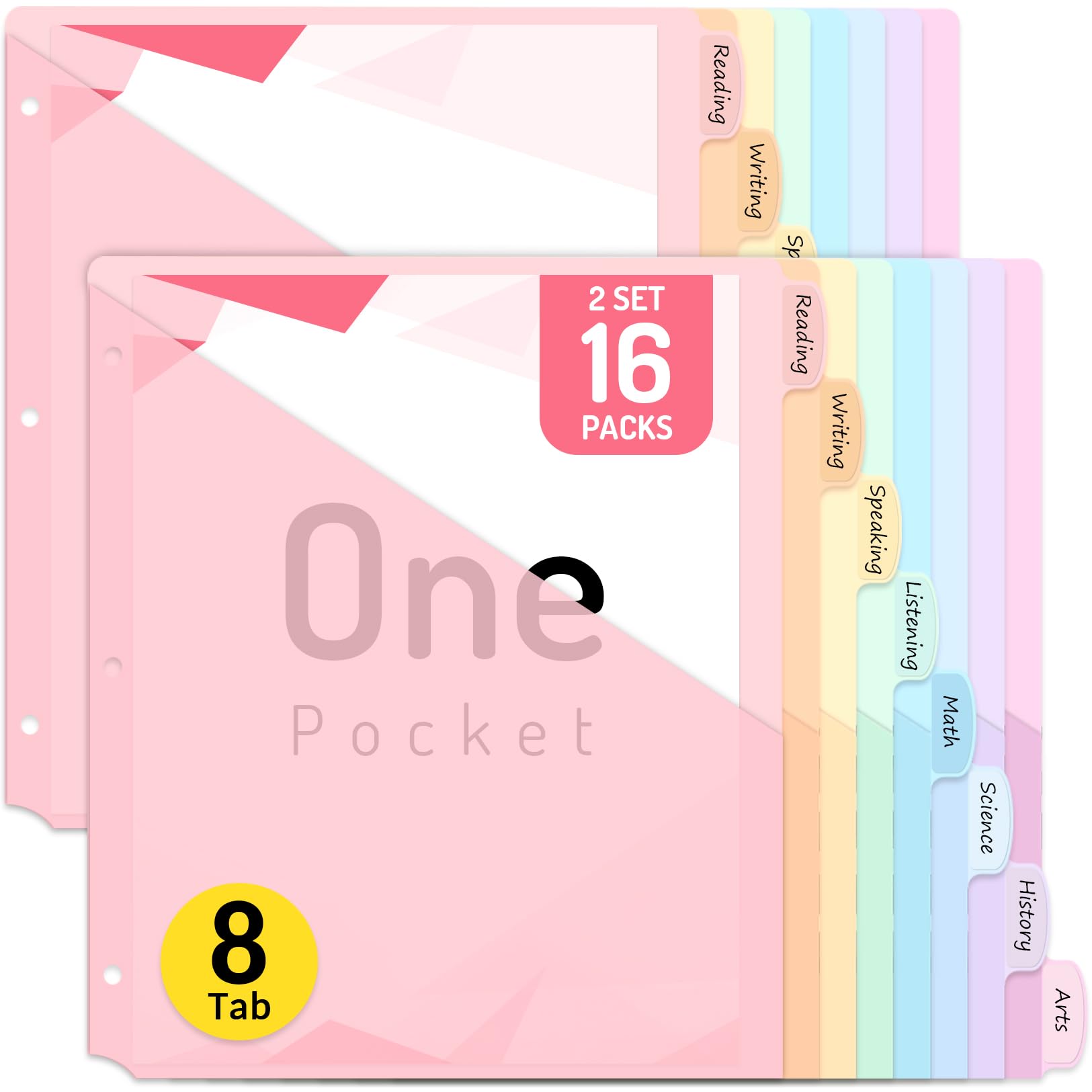Forvencer 16 Count Dividers for 3 Ring Binder, 8 tabs Binder Dividers with Pocket for US Letter Size, Binder Dividers with Tabs for School Office and Home Organization, Multicolor, 2 Sets