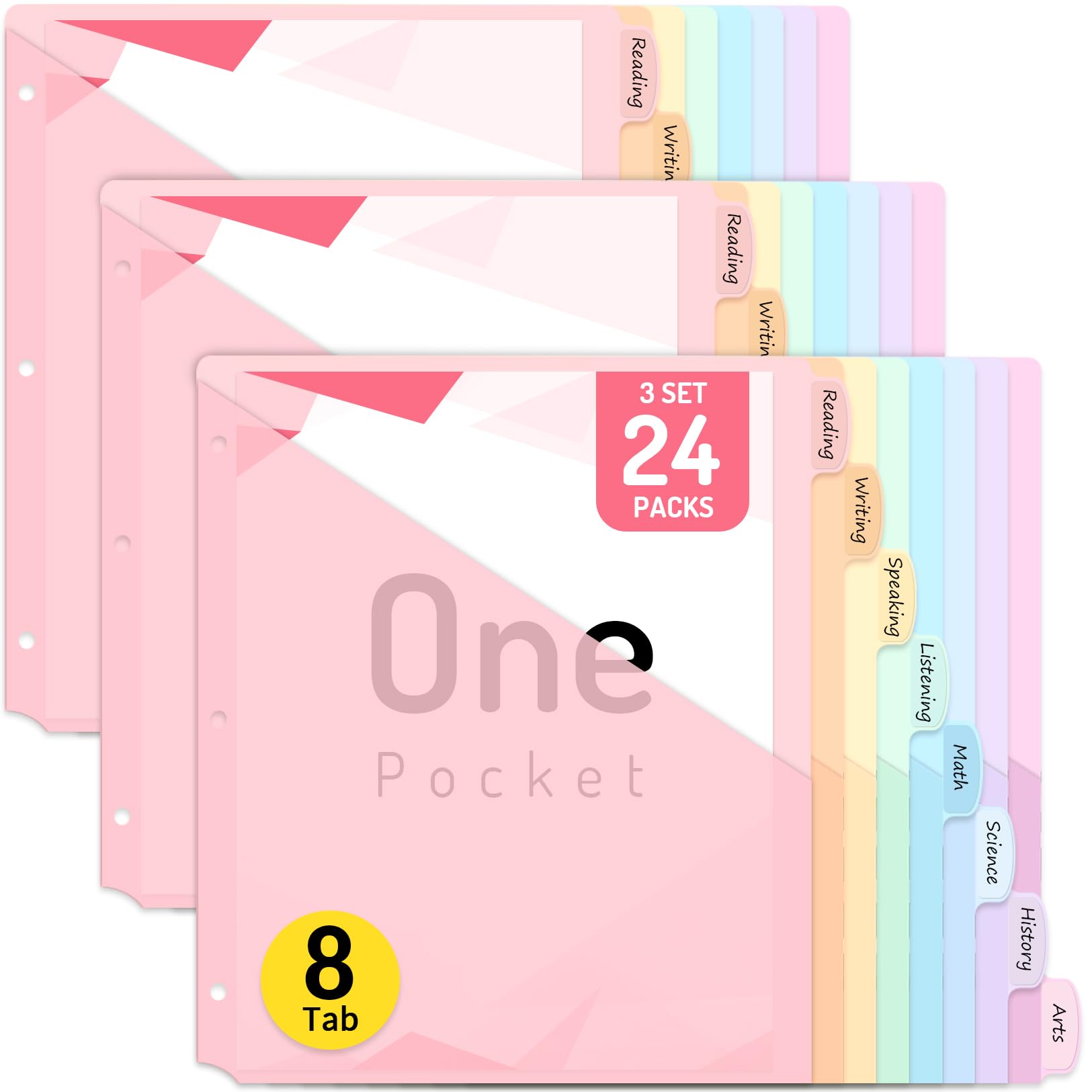 Forvencer 8-Tab Binder Dividers with Tabs, Big Tabs, Write&Erase Plastic Dividers for 3 Ring Binder, Binder Tabs for Organizers, 3 Ring Binder Dividers with Tabs for School Office (Pastels, 3 Set)